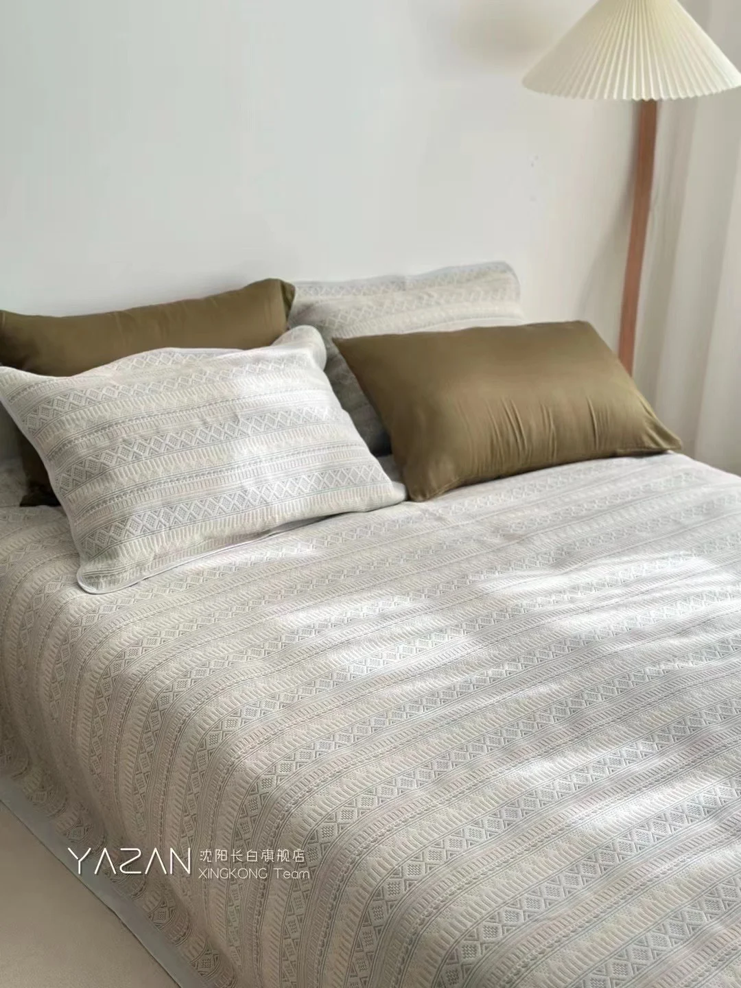 想要一款既舒适又美观的床单吗? Yazan·漫川 棉纱凉席床单、床盖,四季通用,平整不跑床,可机洗,真的是太适合了!🌼素雅的设计,低调的格调,让你的卧室瞬间提升档次。🍃 无论是春、夏、秋、冬,还是早晚凉爽时,它都能成为你的完美选择。轻柔的棉纱材质,给你滑嫩的触感,同时吸湿透气,保证睡眠时的干爽与舒适。😊 而且,220×240的规格,适用于1.8米床,细节处的精心处理,更是彰显了对品质的坚持。👌 轻松拥有品质生活,Yazan·漫川 棉纱凉席床单、床盖,等你来挑选!🛍️