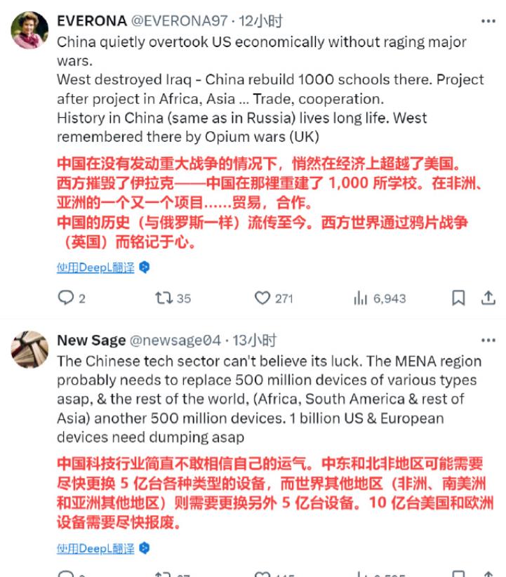 于是乎,就出现了很神奇的一幕。很多中东国家的基层老百姓不再相信欧美产品,转而大肆采购纯中方生产的产品。这也是为啥最近网上的各种段子满天飞的原因。说是段子,但背后不说明问题吗?