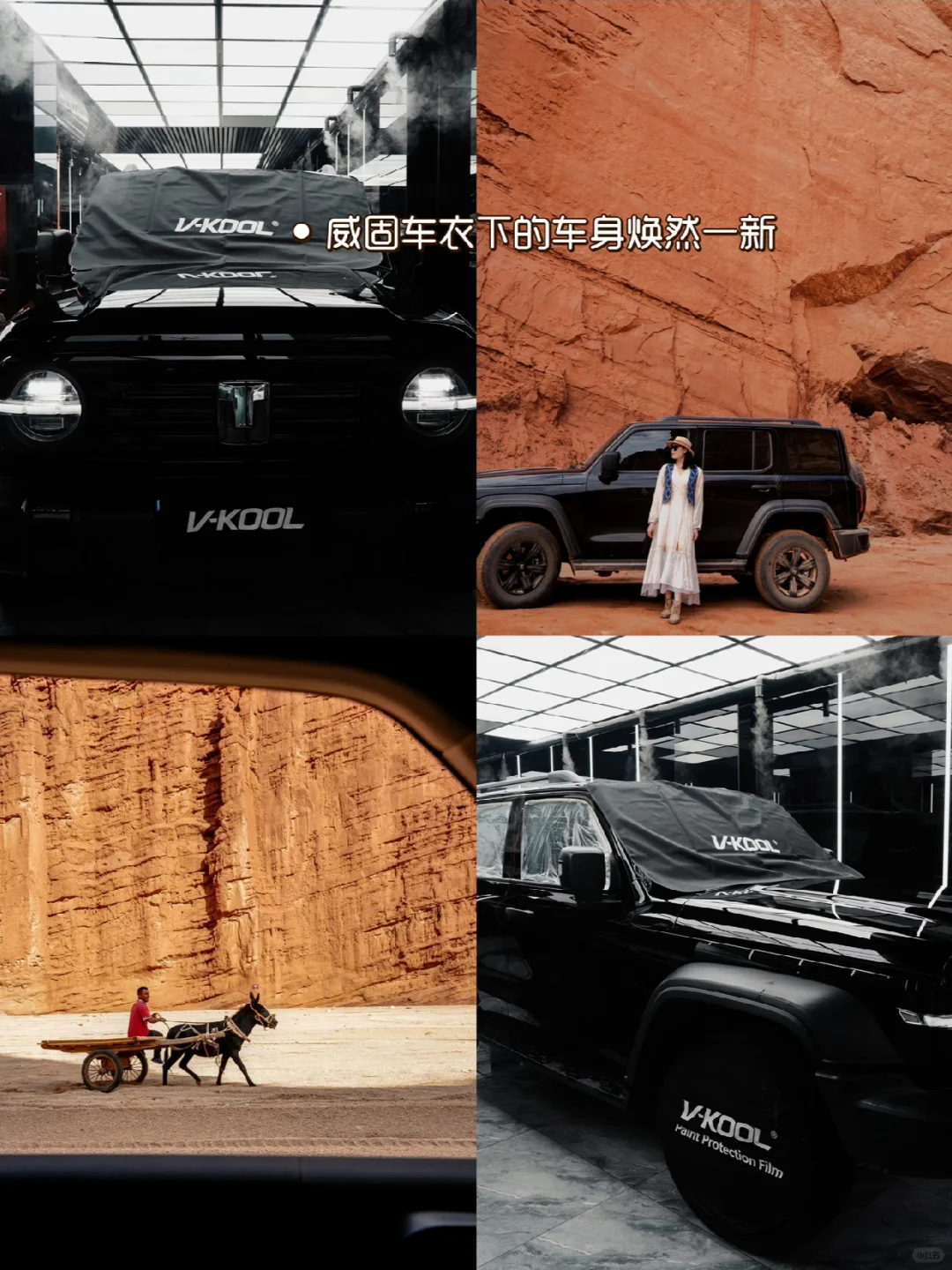 结合行程及南疆天气的多变,店里给推荐了威固第三代科技车衣V10X,这款隐形车衣在车漆保护方面很有东西,很细致的包裹并保护整个车身,小划痕还能自己修复,而且耐环境腐蚀(酸雨、鸟💩克星),像我们当时就遇到了泥石流,但后来发现车身居然没什么损伤,一洗一晒依旧如初,都是车衣的功劳!