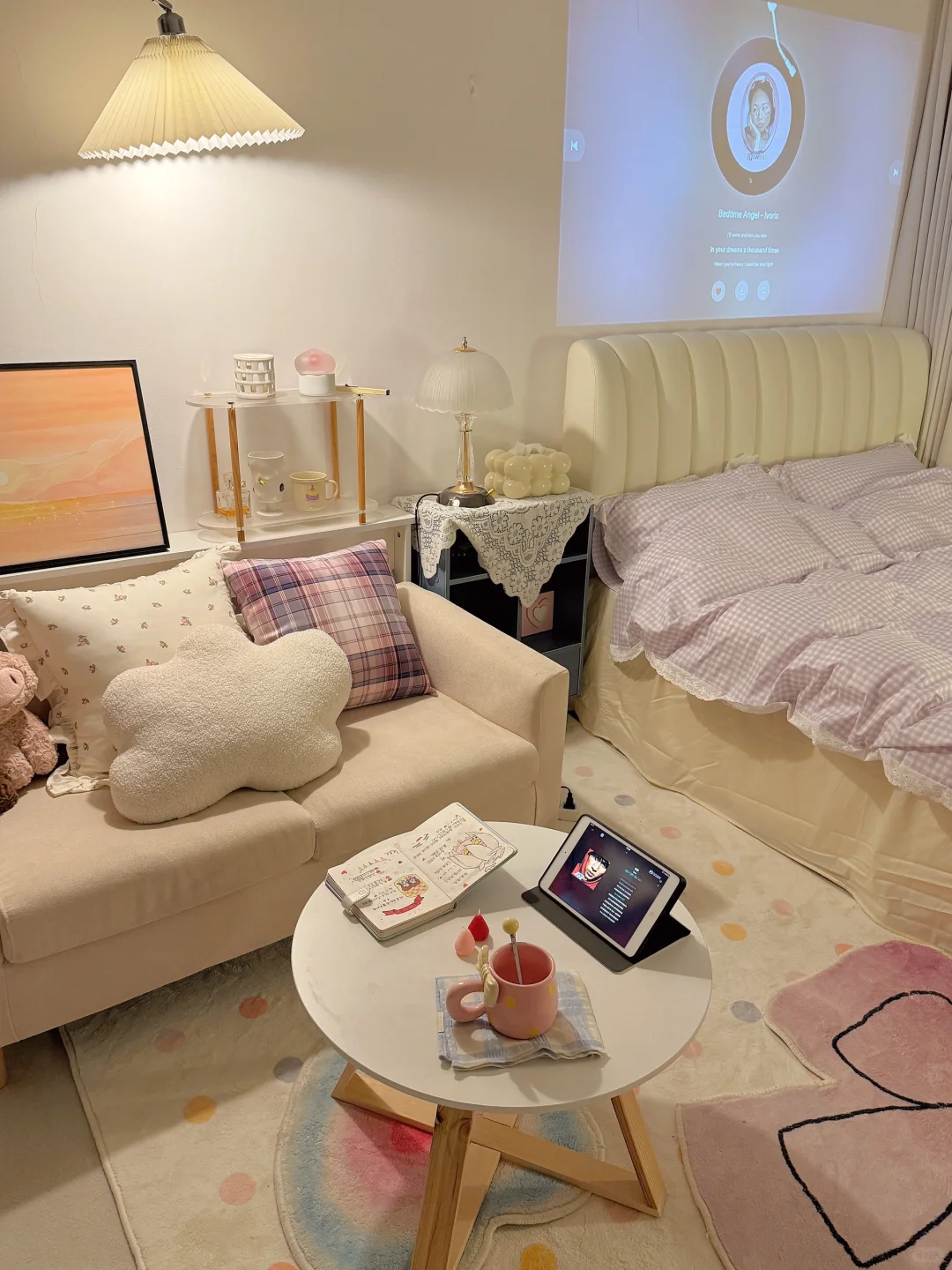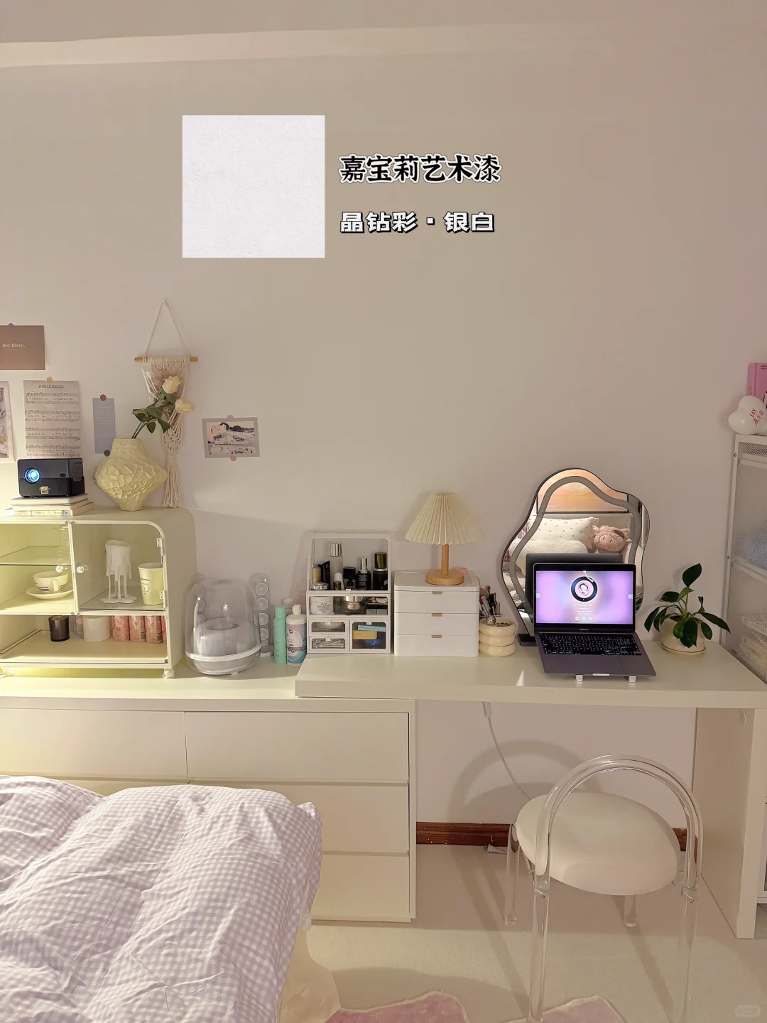 刚开始看到这个房间时候我是不想租的 后面看好多人自己改造后好好看 也学着别人试着改造布置一下 一不小心就改成自己想要的样子啦! 小卧室风格是偏暖色调的 刷的是嘉宝莉艺术漆-晶钻彩/银白 耐刮蹭平时也好打理 灯光一打显得墙面明亮又干净 软装根据自己喜欢的元素来搭配基本不会出错啦