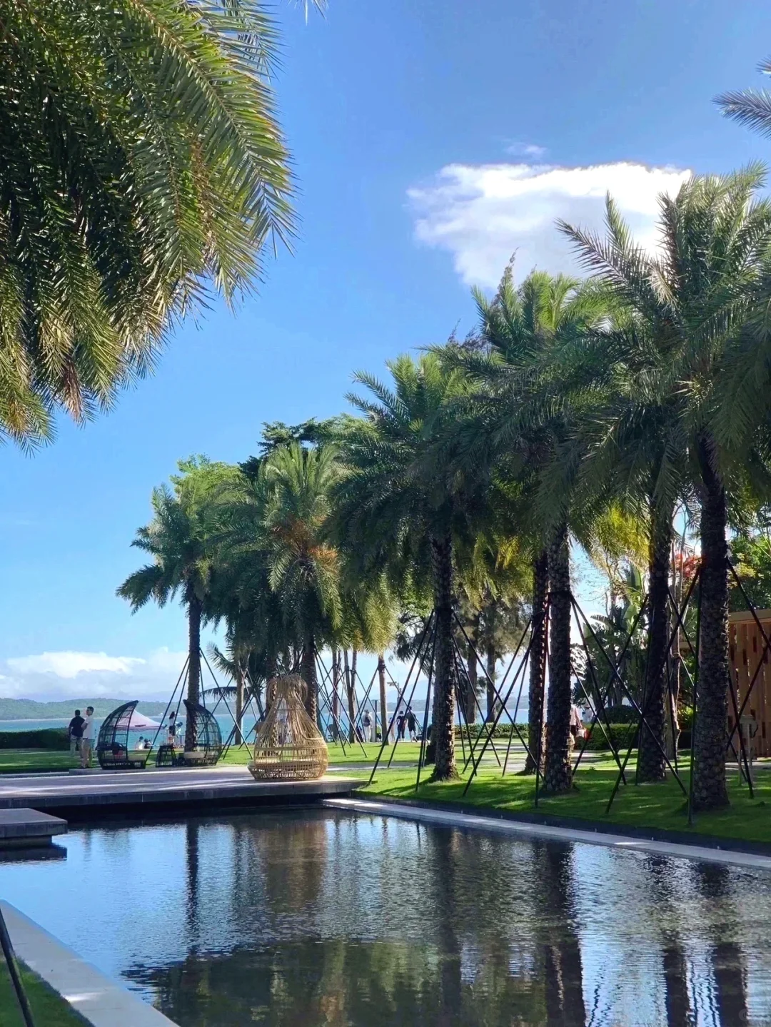 佳兆业万豪酒店采用超美的东南亚式园林设计,面朝大海的园林植被和艺术装置设备,很多小姐姐都是专门过来打卡📷,而且一楼设置了很多网红沙滩躺椅💖,随便一拍都可以轻松出大片~[赞R][赞R]