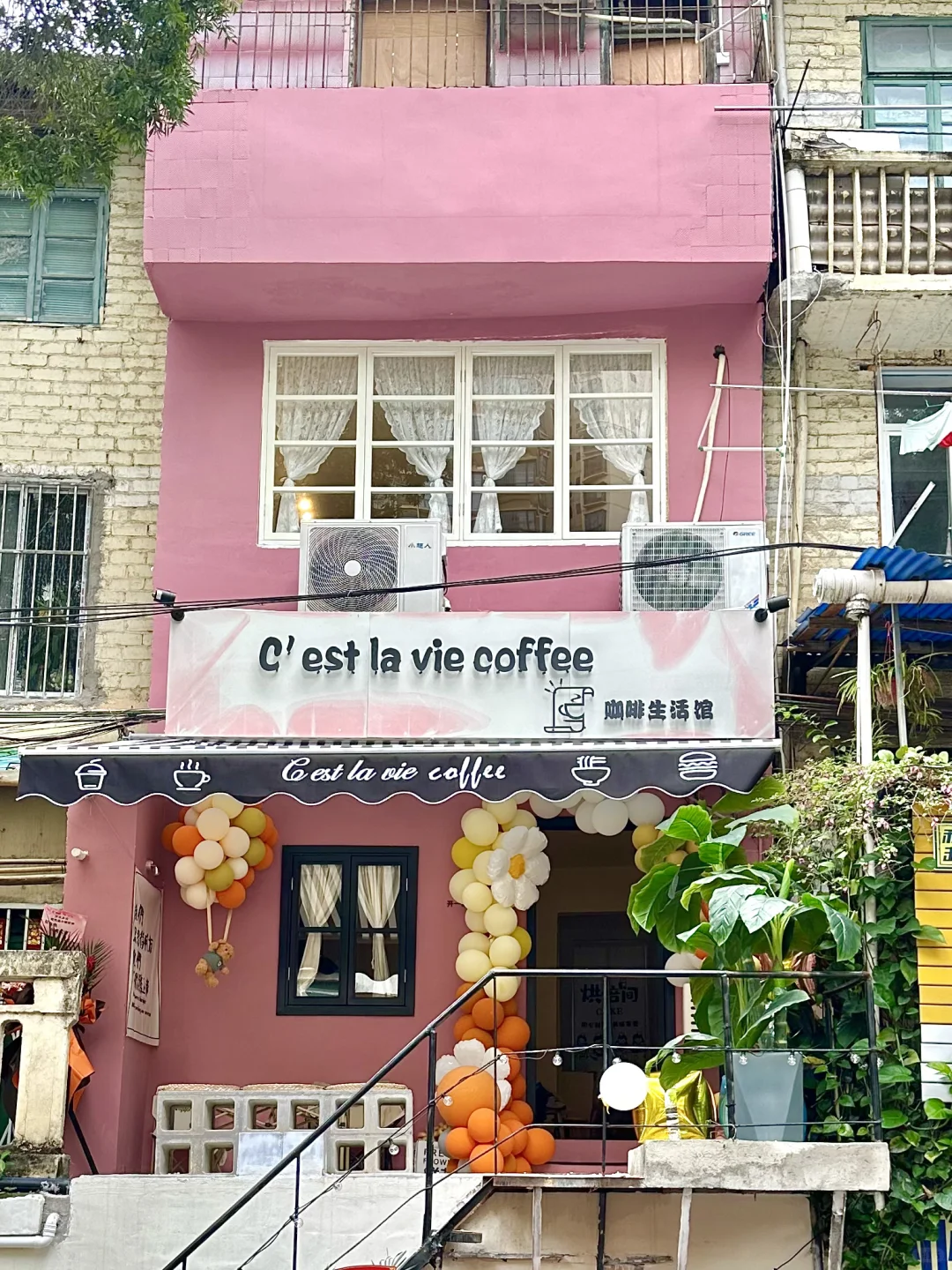 藏在居民楼里的宝藏咖啡店☕️感受慢时光 🎨粉粉嫩嫩的外表哪个女孩子能不爱!超有Feel的 店内有两层,坐在一楼品咖啡看车来车往很惬意!还有二楼这个窗边拍照好绝…坐在窗边,阳光透过窗口🪟,怎么拍都好看✌️ 还有那些不经意间的小装饰,每一处都透着店主的巧思和用心💖 值得一提的是这里的出品👍 ☕️咖啡品种很多,醇厚浓郁,味道很爱,还有水果沙拉🥗,面包小吃…真的好丰富! 约上几个姐妹来个美美的下午茶,放松心情🥰 🏠C'est la vie塞拉维咖啡生活馆(新阳路139号)