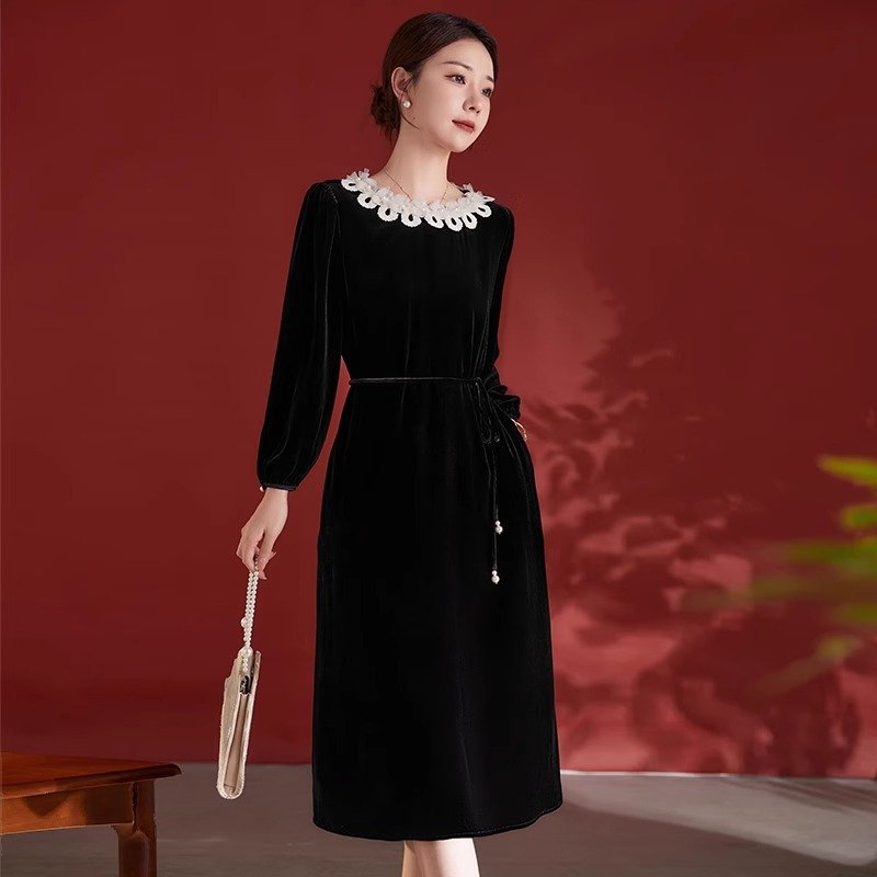 丝绒顺滑,轻盈如羽,秋日内敛奢华之选,绽放女性温婉光彩。连衣裙真丝连衣裙桑蚕丝连衣裙