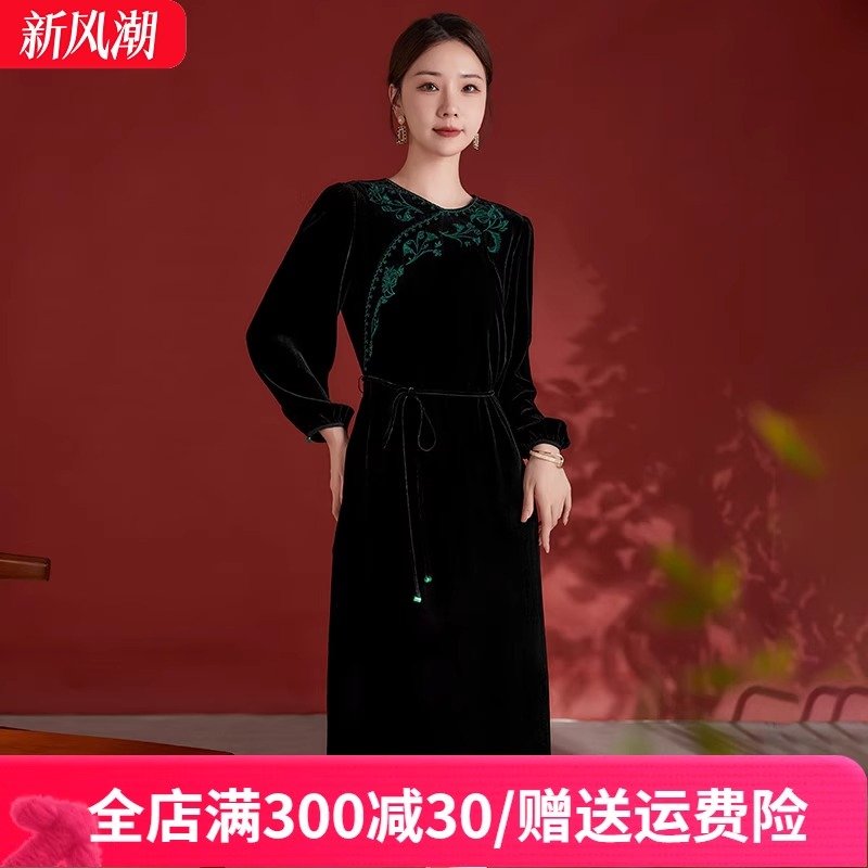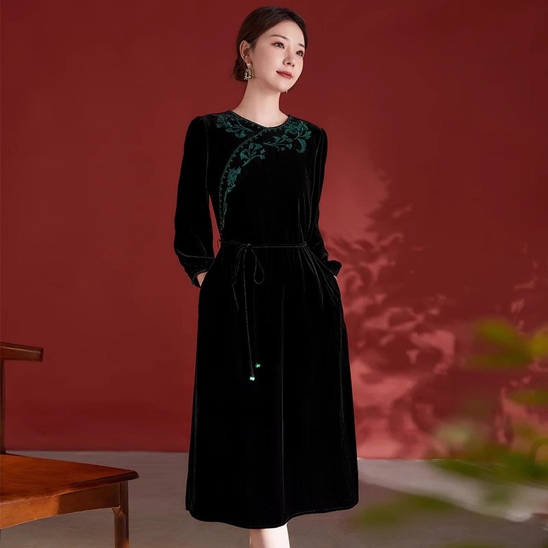 丝绒顺滑,轻盈如羽,秋日内敛奢华之选,绽放女性温婉光彩。连衣裙真丝连衣裙桑蚕丝连衣裙