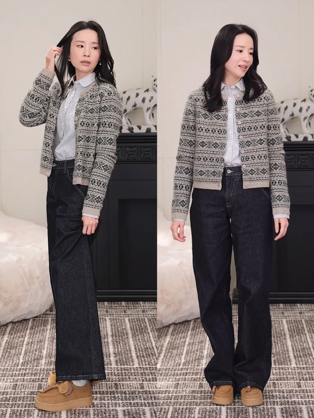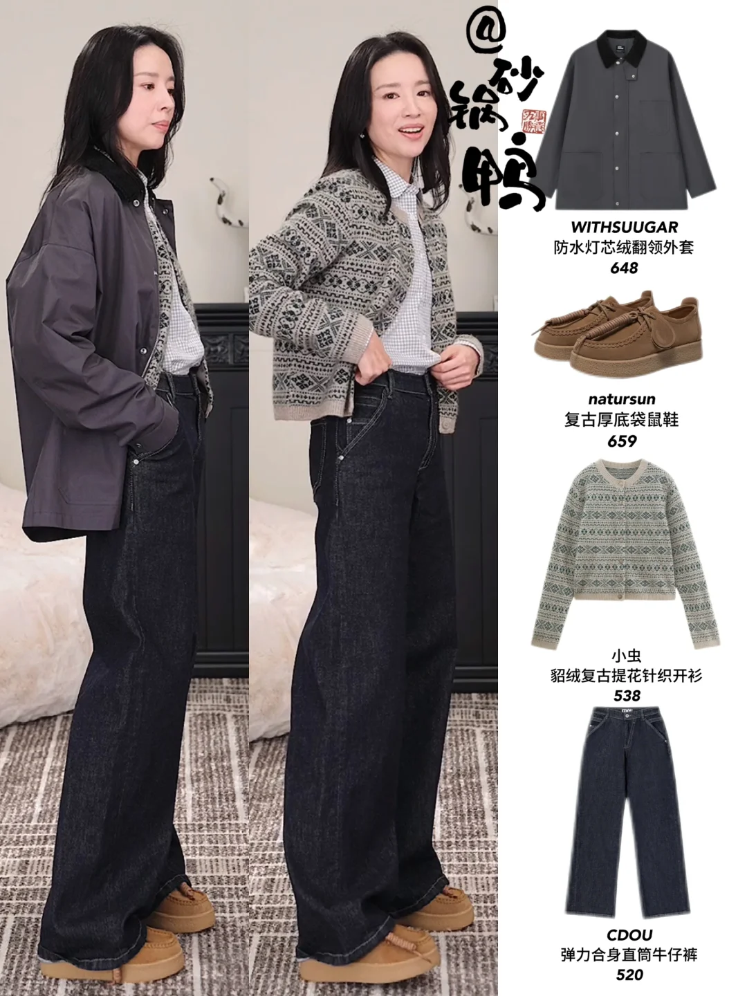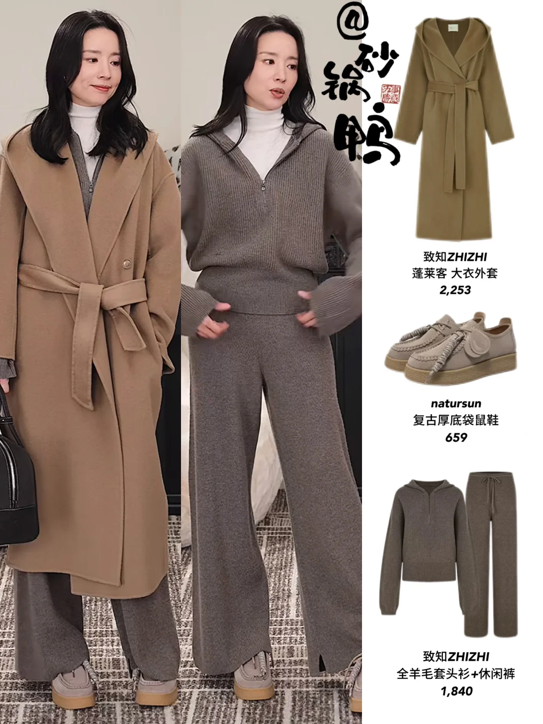 董洁的直播衣橱又更新啦! 开播第一套就被惊艳到了,秋冬这样穿真的不错 上身是深色系的叠穿搭配,更有深秋氛围的就是脚下这双袋鼠鞋啦~不仅能美美增高,什么风格都很百搭,秋冬真的很需要一双这样的鞋子! 图源:董洁
