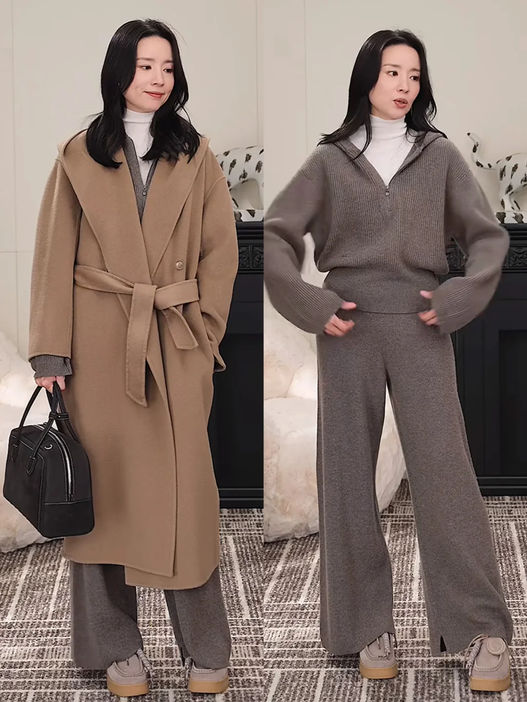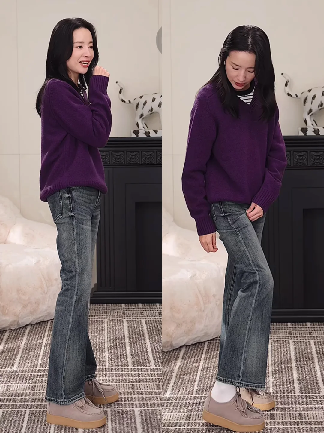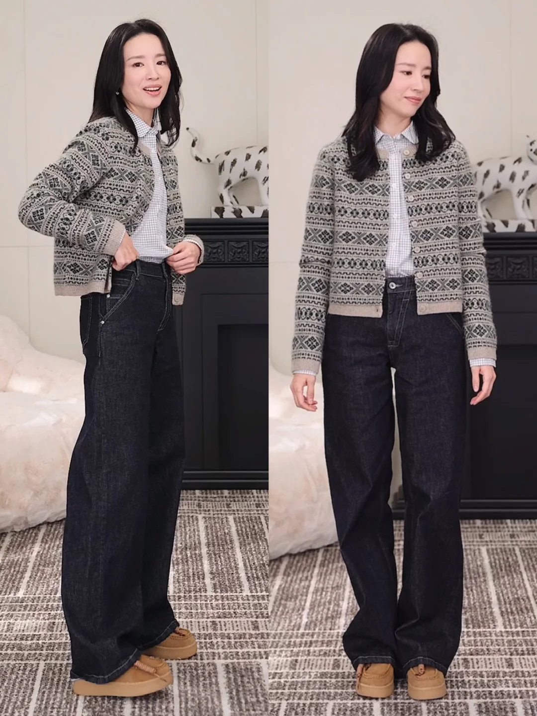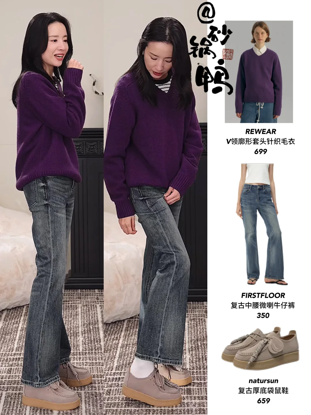 董洁的直播衣橱又更新啦! 开播第一套就被惊艳到了,秋冬这样穿真的不错 上身是深色系的叠穿搭配,更有深秋氛围的就是脚下这双袋鼠鞋啦~不仅能美美增高,什么风格都很百搭,秋冬真的很需要一双这样的鞋子! 图源:董洁