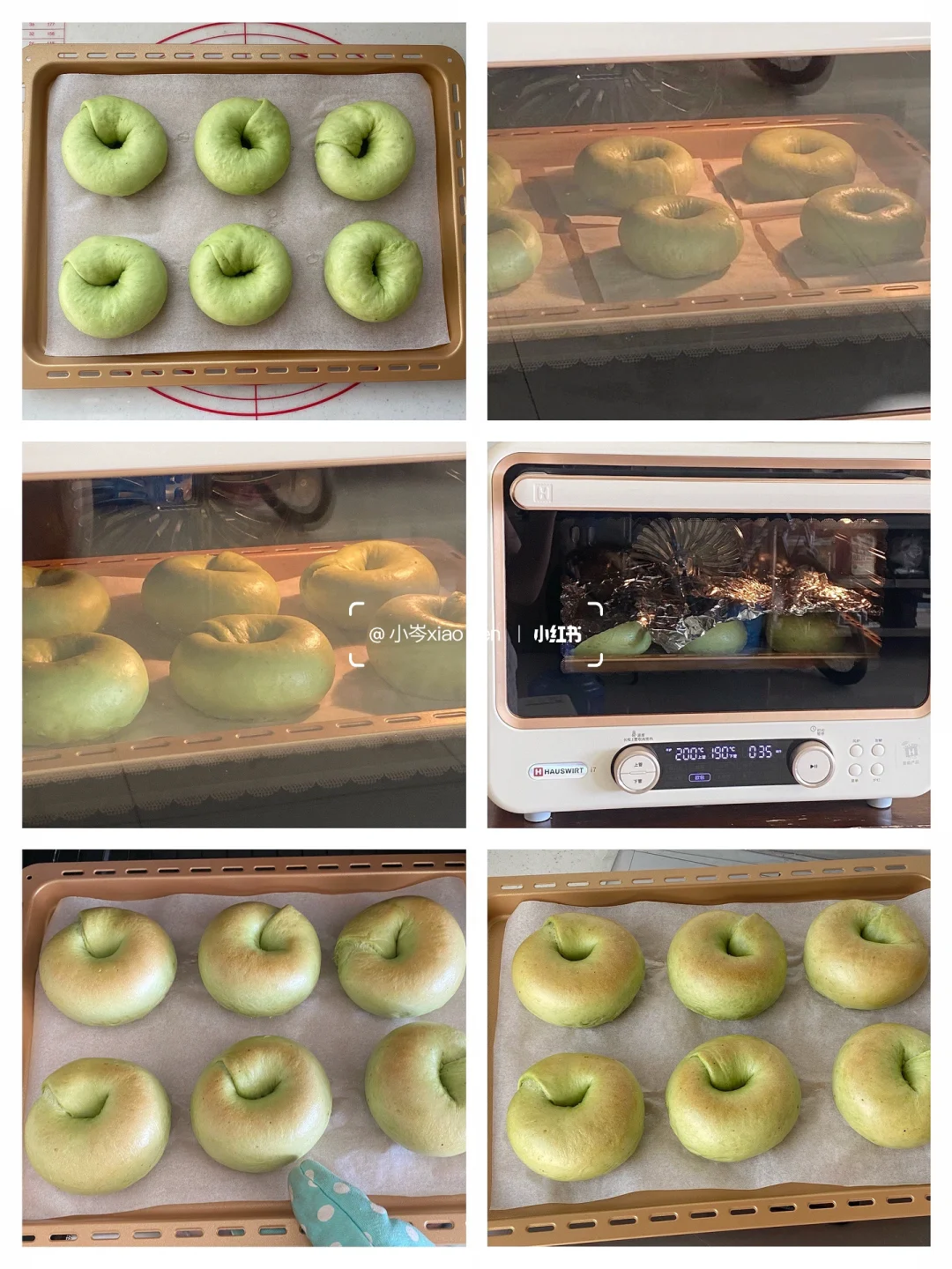 8.送入预热好的烤箱上火200℃,下火190℃,烘烤17分钟左右,上色满意加盖锡纸。