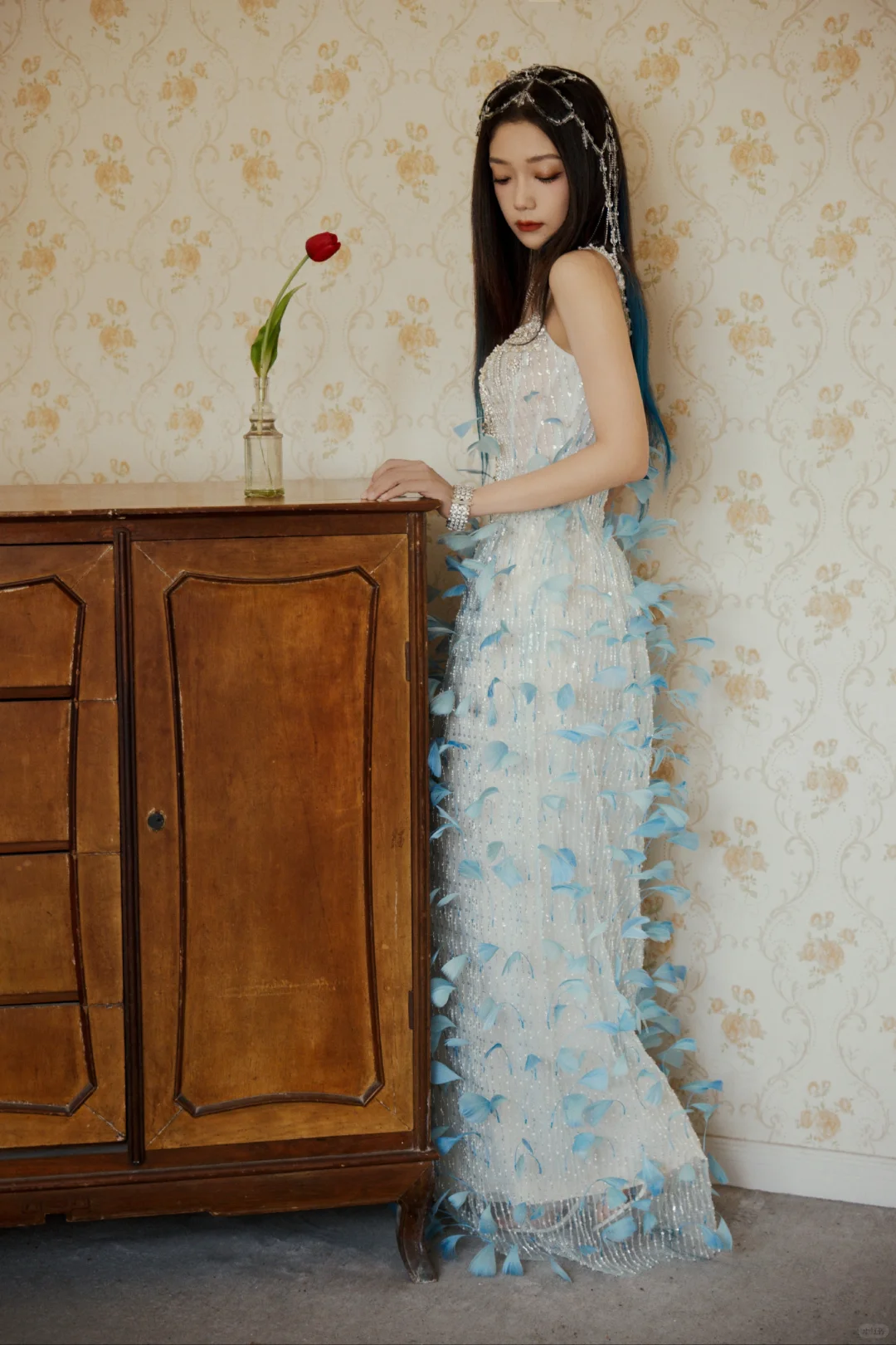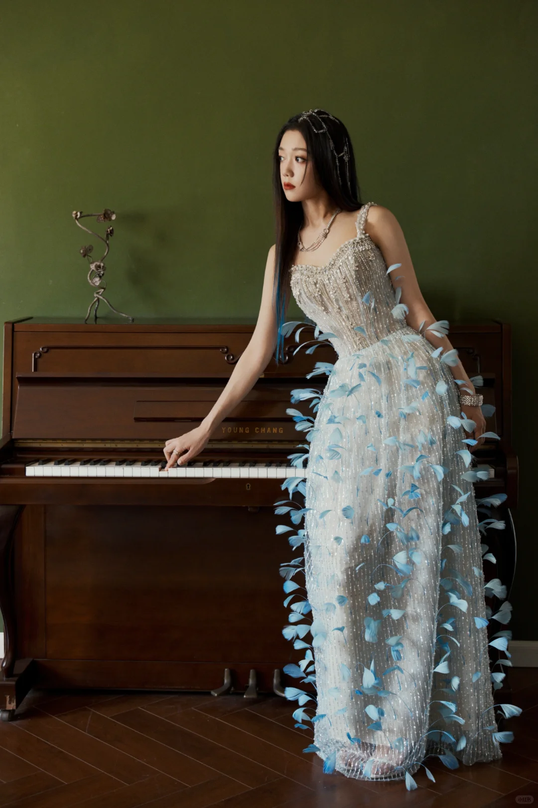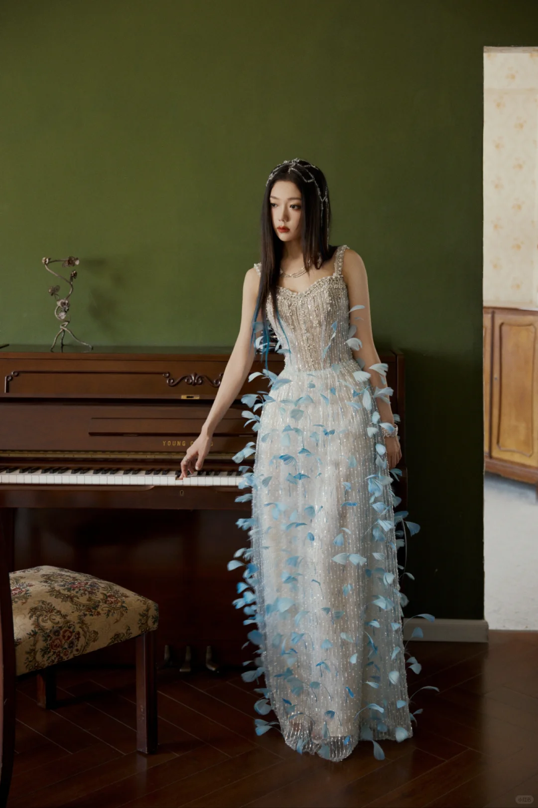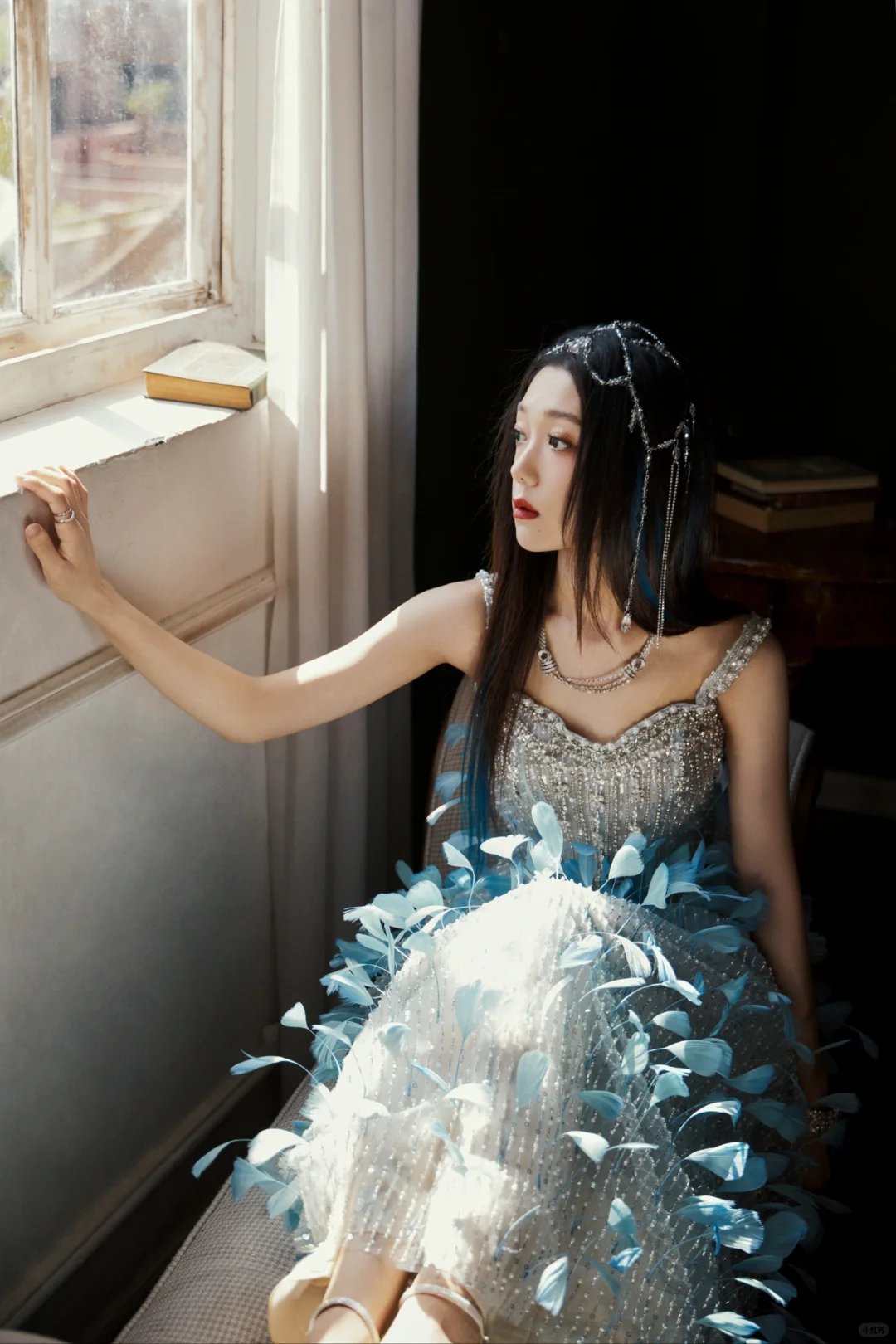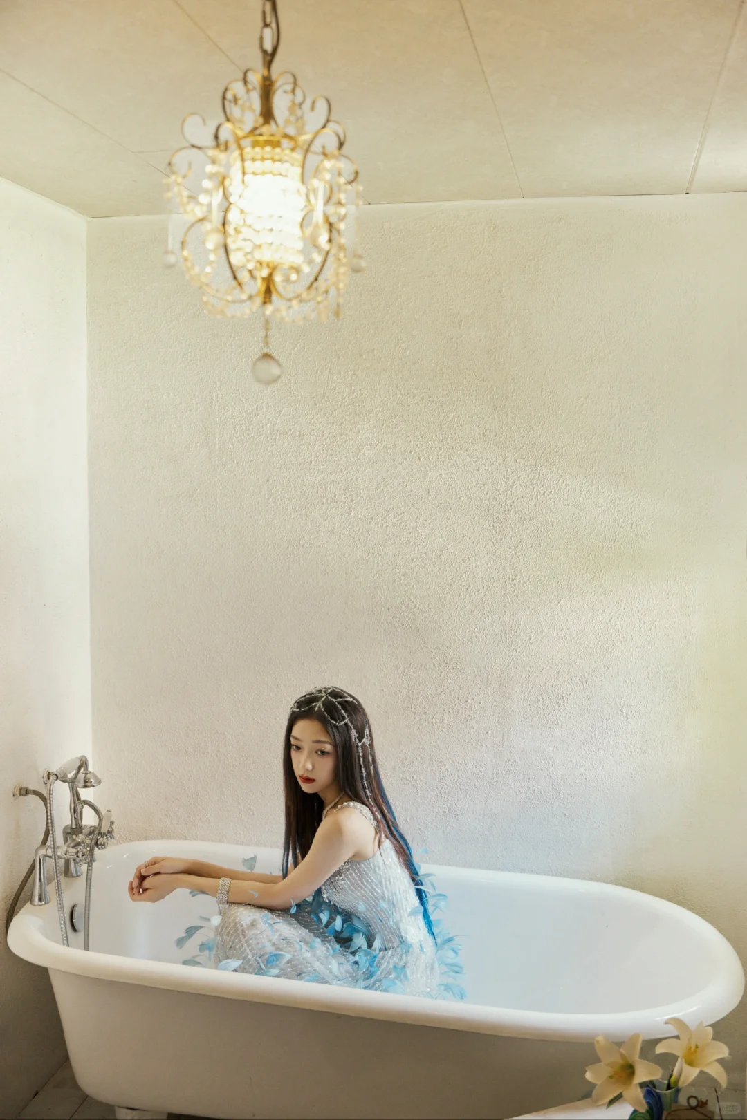 视觉中国拍的Lisa穿繁花紧身长裙照