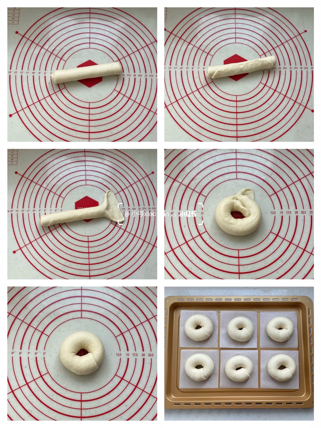 5.依次处理好所有面团,收口朝下,摆放在剪成小块的油纸上,放在温暖湿润处(35度左右)发酵20分钟至1.5倍大;