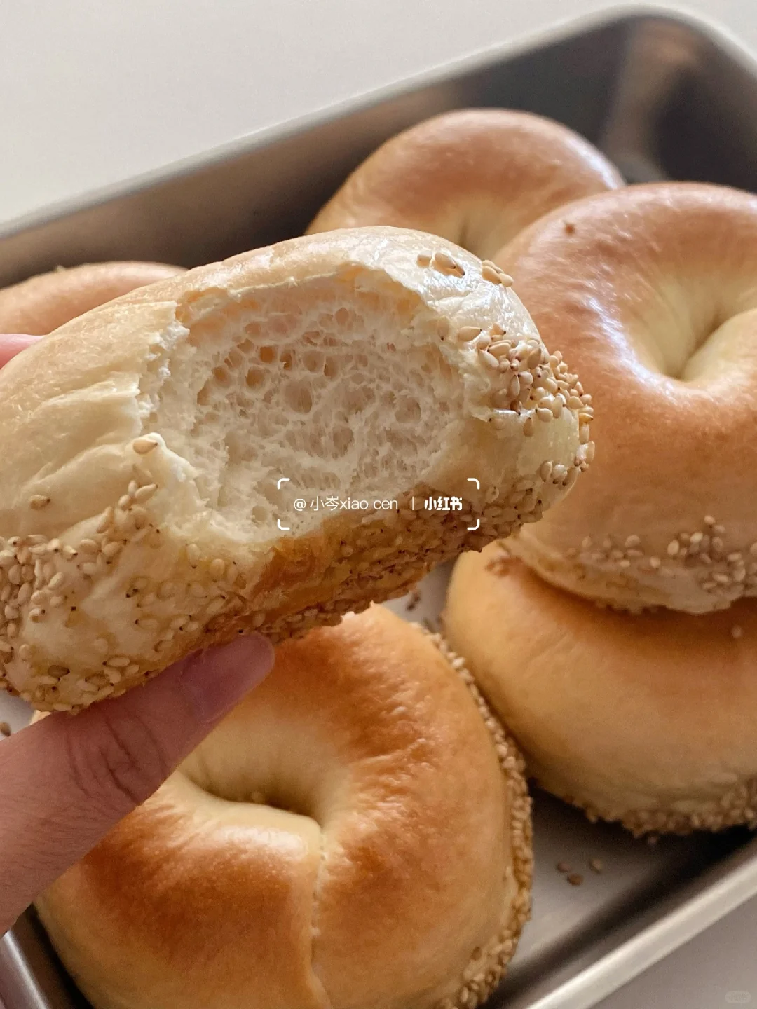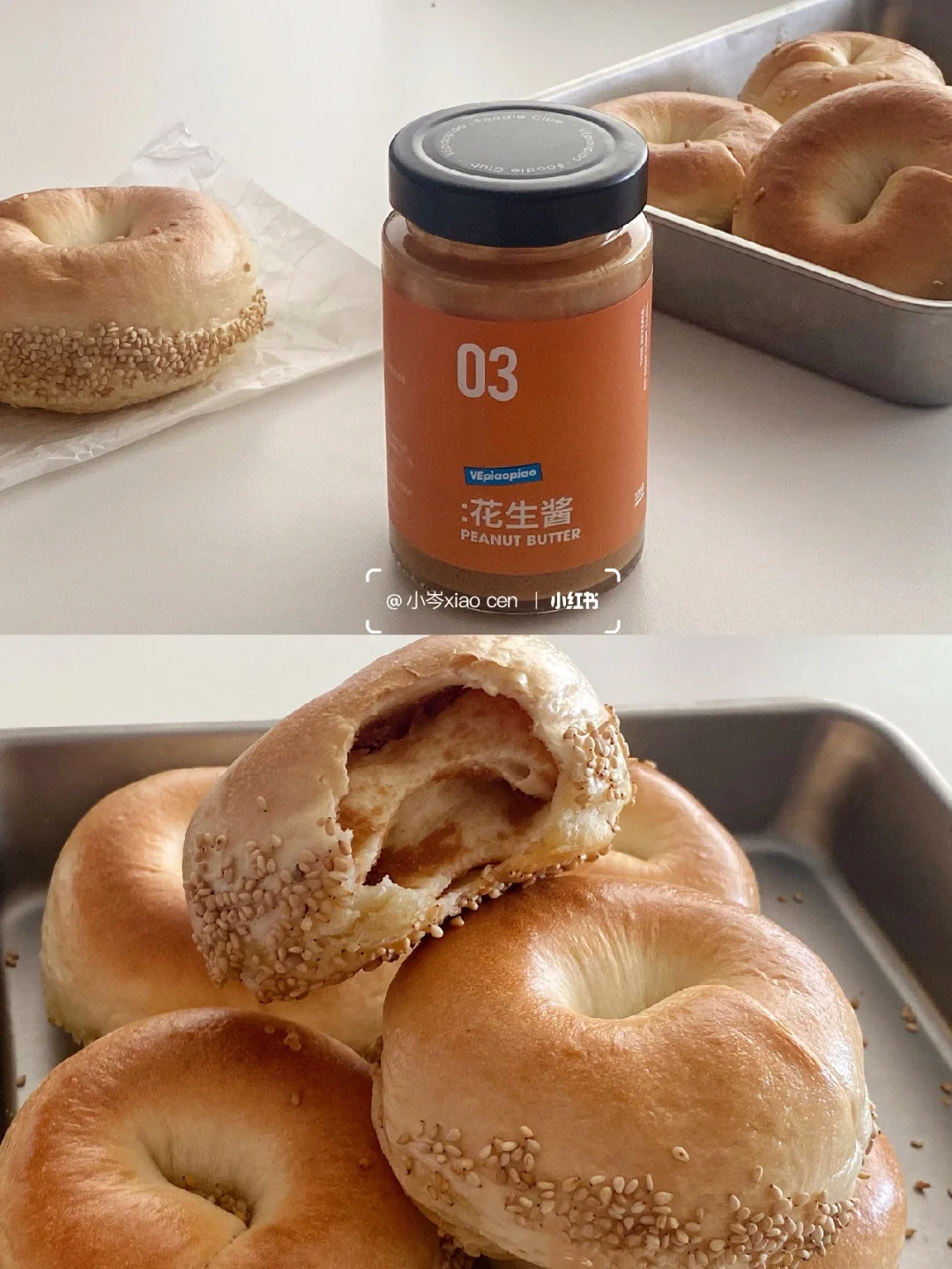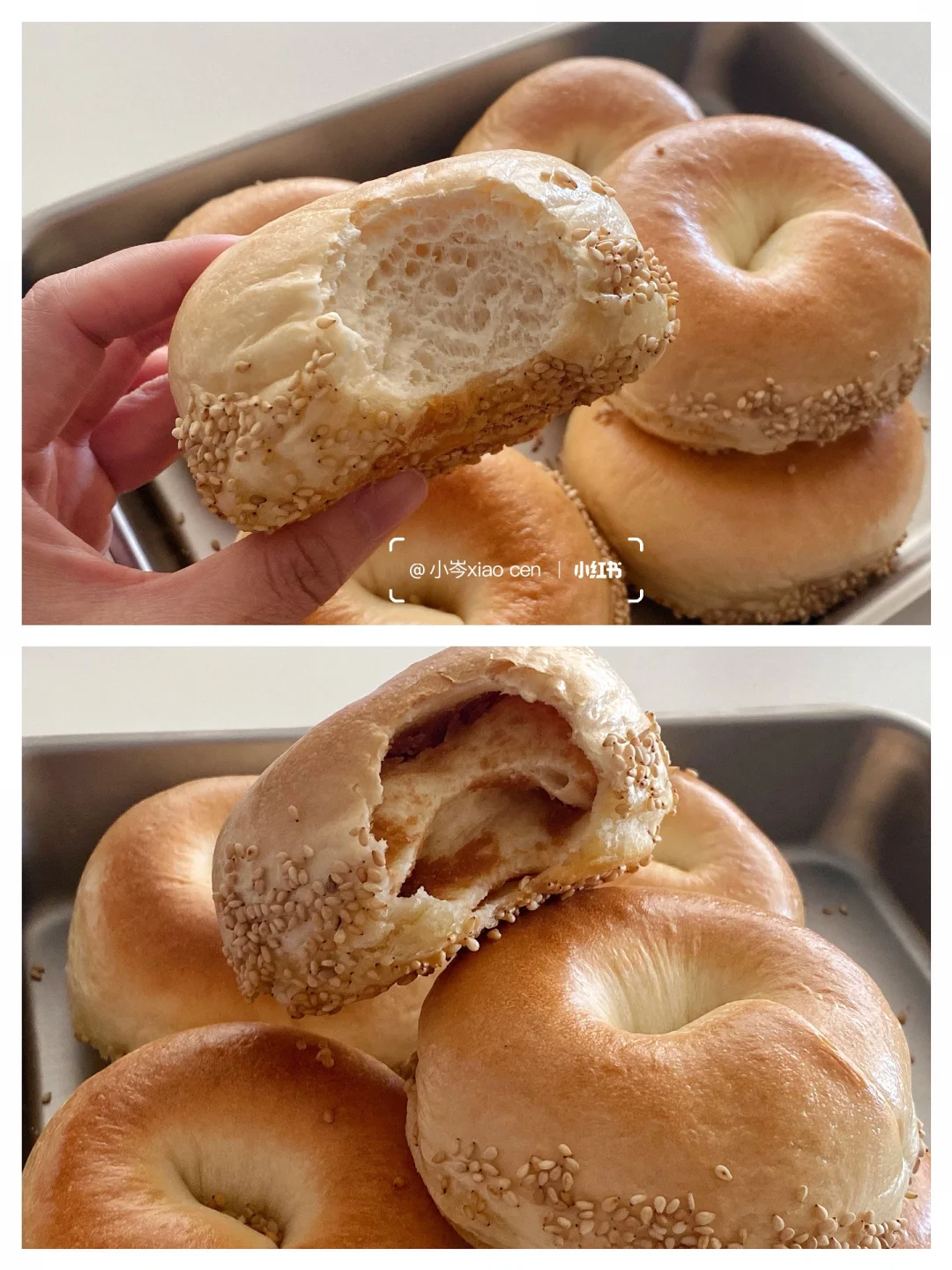 8.面团底部沾白芝麻,依次摆放在烤盘上,面团中间放一小块咸味黄油;