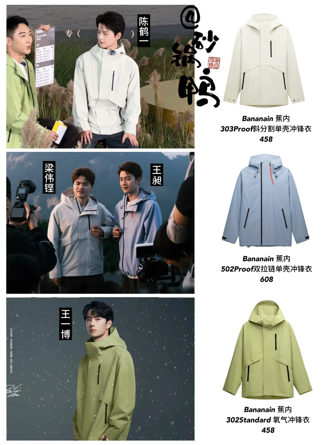 发现最近帅哥们的衣橱都少不了冲锋衣耶 陈鹤一最新物料就穿了,而且前天直播这套好帅气啊~前段时间国羽王昶和梁伟铿去爬黄山也穿了!帅照直接霸屏!还有代言人王一博就更不用说啦,穿上这几件,帅得很轻松😎~ 而且我发现他们上身的都是氧气冲锋衣,能一站式解决出游烦恼,不愧是帅哥严选👀 图源:陈鹤一,王昶以及网络