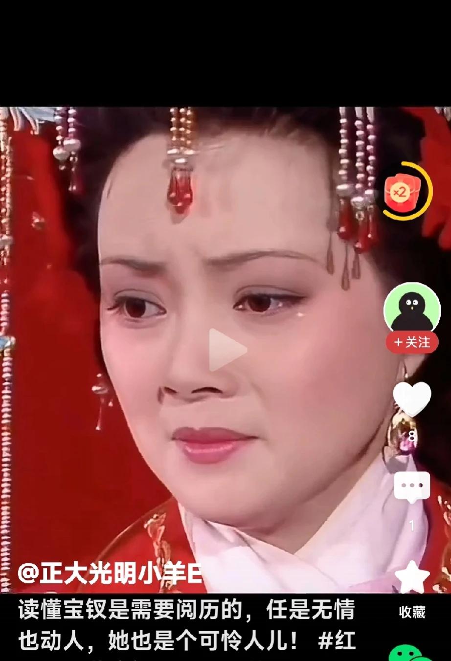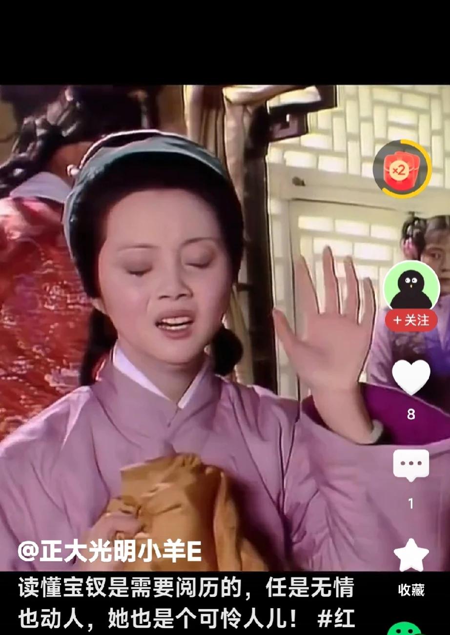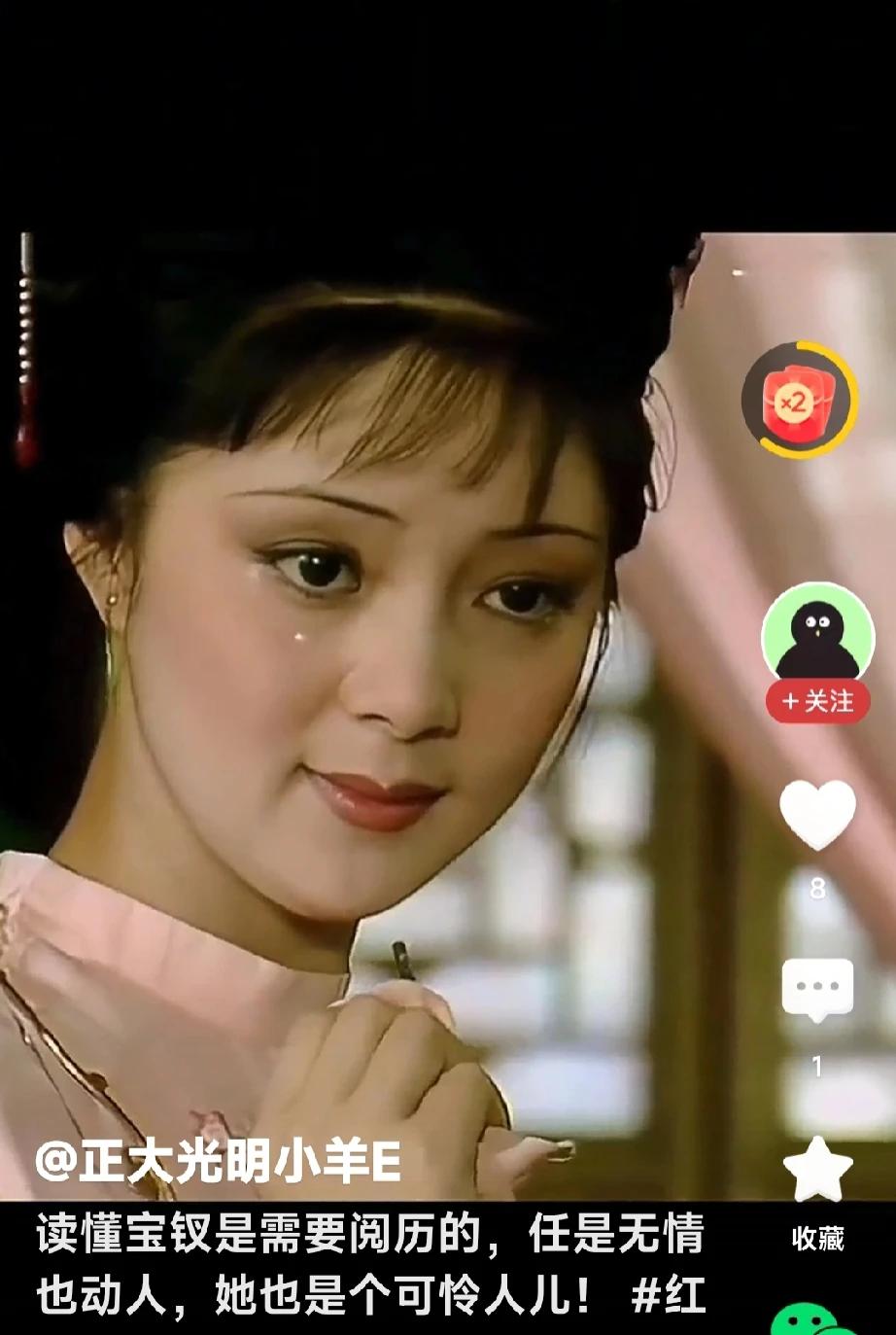 刷老剧,看红楼,薛宝钗,可怜人! 有人看红楼,把她骂得体无完肤,虽然我也不大喜欢这个人物,但还是能管住自己的嘴不要太损,究其实,她也是个可怜人——别忘了,大前提,在警幻仙姑的册子上她也是金陵一省薄命司里的薄命人!她自幼失父,母亲太慈,唯一兄长不成气,撑不起这个家乃至整个家族,她一弱女子就得比其他富裕之家的弱女子多一些承担,这也逼得她早熟,比同龄人更早懂事儿…有人说穷人的孩子早当家,要我说,对于家大业大的富人家子女来说,他们的孩子只怕更早来当家,尤其父亲不在的,看看宝钗和薛蟠薛蝌兄妹们不就是?还是说回到宝钗,说她可怜,除了从小失怙外,到了京城原本的待选宫廷女官的美事也不翼而飞,这本是薛宝钗改变个人和家族命运的一次天大的机会(商女变仕女,商户可能变仕族),这对宝钗可是个天大的打击,要知道她可是有大志向的人——好风凭借力,送我上青云。可是这样的大好机会突然就这样没了,这个机会为啥凭空消失曹公没有交代,看得读者心里疑云重重…… 我深深地遗憾后四十回的丢失,这是个永远也无法破解的迷,唉~~ ~ 进宫梦幻灭以后,她在大观园住得日久渐渐地对美男子表弟贾宝玉起了心思,而贾宝玉对她的艳丽容貌和丰腴身姿也是有一定的生理反应的,两人之间也是有点儿说不清道不明的暧昧的,这从薛家刚来那年冬天宝玉去梨香院看望小恙的薛宝钗、二人互看对方佩戴的金锁和美玉时就能看得出来的,可是这点点暧昧偏偏被冰雪聪明七窍玲珑心的林怼怼看了出来,于是她一有机会就点拨两人,当面讥讽的那次就是端午节后不久在老太太屋里宝玉想看宝钗笼在手腕上的红麝串那次,当时宝钗由于肌肤丰盈半天褪不下来,宝玉看着眼前雪白的一截酥臂都看呆了,这时候黛玉的一条手帕从天而降重重的抽在宝玉的眼角上,这才把陷入痴呆状态中的宝玉打醒过来,还被黛玉讽刺为一只呆雁…薛宝钗也脸红不自在…这一切又被在场的人精凤辣子洞明,于是她又打趣了三人道,问:谁吃了生姜,这脸怎么热热辣辣的呢?这一说,那三人更是脸红的更脸红尴尬的更尴尬,在场众人始终没搞明白她们四个人的哑谜…… 又一次宝玉挨打宝钗送药那次也是充分暴露了宝钗对宝玉的女儿心,她是真的对宝玉有意思(大家可以去读原文这一段)不接受辩驳,而且她日常更是有事没事不知不觉拔脚就往怡红院去,去得太勤,坐得太久都不走,以至于晴雯等牢骚满腹——自己晚上不睡觉,也连累我们也睡不成…可见宝钗心心念念都在怡红院,在怡红院的那位男主人身上…… 也正是因此,所以她在日后王夫人跟她母亲薛姨妈商讨她跟宝玉婚事的时候、在母亲来问她的意思时她没有拒绝,而薛姨妈之所以来问,是因为她也深知宝玉和黛玉之间的深厚情分,如果女儿宝钗不蹚这趟浑水,不愿意插入宝黛之间的话,那薛姨妈自然会替她回绝姐姐王夫人——毕竟薛姨妈是极其爱这个比儿子强太多的出色的女儿的,她深知女儿宝钗如果真的介入宝玉黛玉之间未来未必一定能过好日子、因为宝玉心里会一直有白月光林黛玉的影子,这样的话小夫妻俩怎么可能把日子过好?她是过来人,有经验,因此誓必要来问问女儿问个清楚,谁曾想,女儿竟然是如此的愿意——薛宝钗以女儿家怎好谈论自己婚事为名推脱直接回答,反而婉转地表达儿女婚事但凭父母做主,薛姨妈一下子就明白了,女儿愿意,既然女儿愿意,那她为了女儿也就干了,母女俩就这样强抢了黛玉的位置,这是这母女俩可恶的一点,也是最为人诟病的一处,虽然这是续书作者高颚写的情节,但看得出来这里他还是尊重了前八十回曹雪芹留下的线索,把金玉良缘给成就了,因为曹雪芹前八十回里明确了金玉良缘打败了木石前盟,所以这里续书作者没有写错,就是曹公本人来写这一截薛宝钗婚事也是绕不过去薛姨妈的,毕竟宝钗父亲不在了,他们兄妹二人的婚事无论如何都得经过薛姨妈,就是曹公来写,薛姨妈母女二人也会是如此表现,也正是这一次母女二人的“抢宝玉”恶行导致了薛宝钗日后的婚姻不幸和成为可怜人的原因——她最终还是被贾宝玉给遗弃了!因为贾宝玉始终忘不了他的白月光林妹妹,书中有这么两句诗表明了贾宝玉婚后的心态——面对着山中高士晶莹雪(薛),终不忘,世外仙姝寂寞(林)!他始终忘不了他的林妹妹,可是林妹妹已逝,芳踪无处可寻,怎办?他经常想起自己以前对林妹妹的誓言“你死了,我做和尚去!”这样的话,他们二人闹了两次说了两次,黛玉还曾伸出两个手指头比划过,那一幕仿佛就在眼前…… 这一幕不断地在刺激宝玉的心灵,终于在抄家之后,长辈们死的死,关的关,流放的流放,再也没人能管住他压制他了,他终于可以做一回自己的主了,于是他果断地选择了出家,放弃了美妻宝钗,追随白月光而去…… 而薛宝钗终成弃妇,这就是我说的她也可怜人的原因!但是,还有一句,可怜之人必有可恨之处! 切记:为人处世、手不要太长,心不要太贪!悲剧有时候是自己造成的!