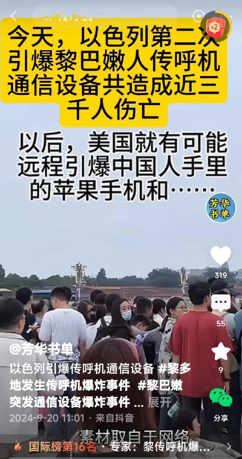 网友说,这招本来是老美到时候准备用来对付我们的,结果提前被以色列对付真主党先给暴