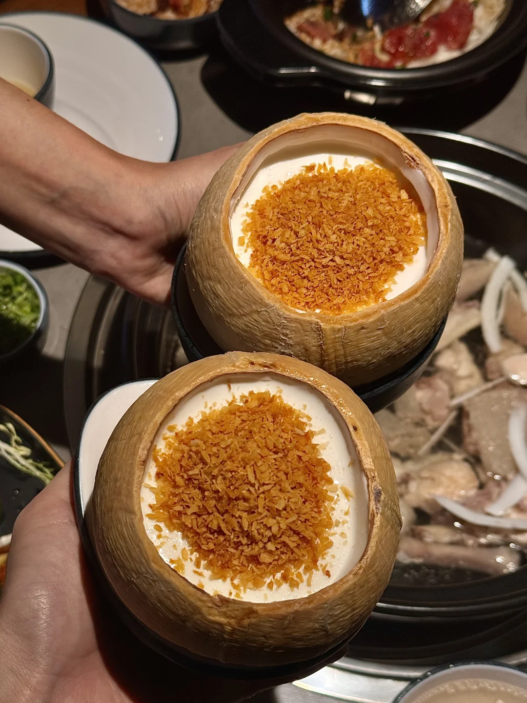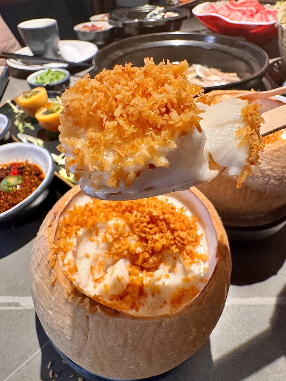他家汤底是纯纯的现开椰子 不加一滴水的