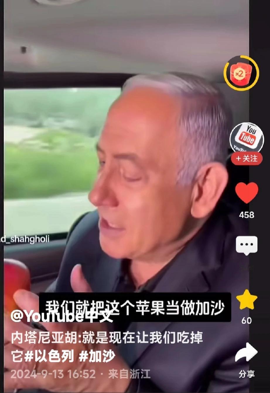 这可不是普通的苹果🍎,而是有象征意义的,他把这个苹果比作加沙和哈马斯,他说让我们吃掉这个“苹果”🍎,对此我表示毫无疑义,我支持![加油][加油][加油] 世界需要和平,毒瘤必须铲除![加油] [比心][送自己一朵花][比心][送自己一朵花][比心][送自己一朵花][比心][送自己一朵花][比心]