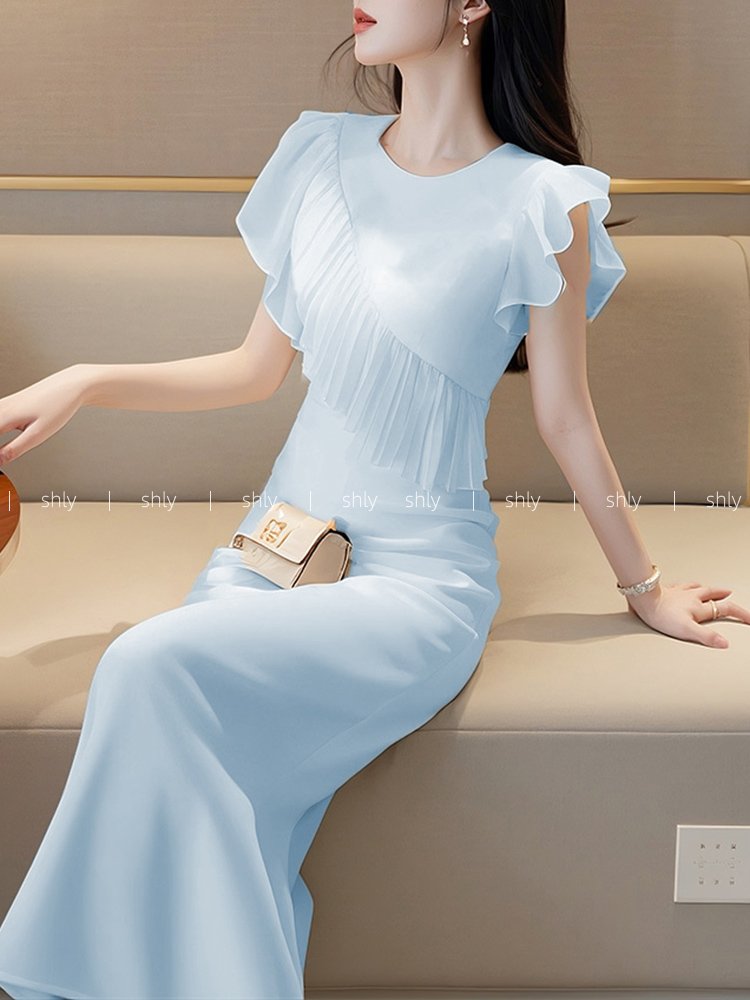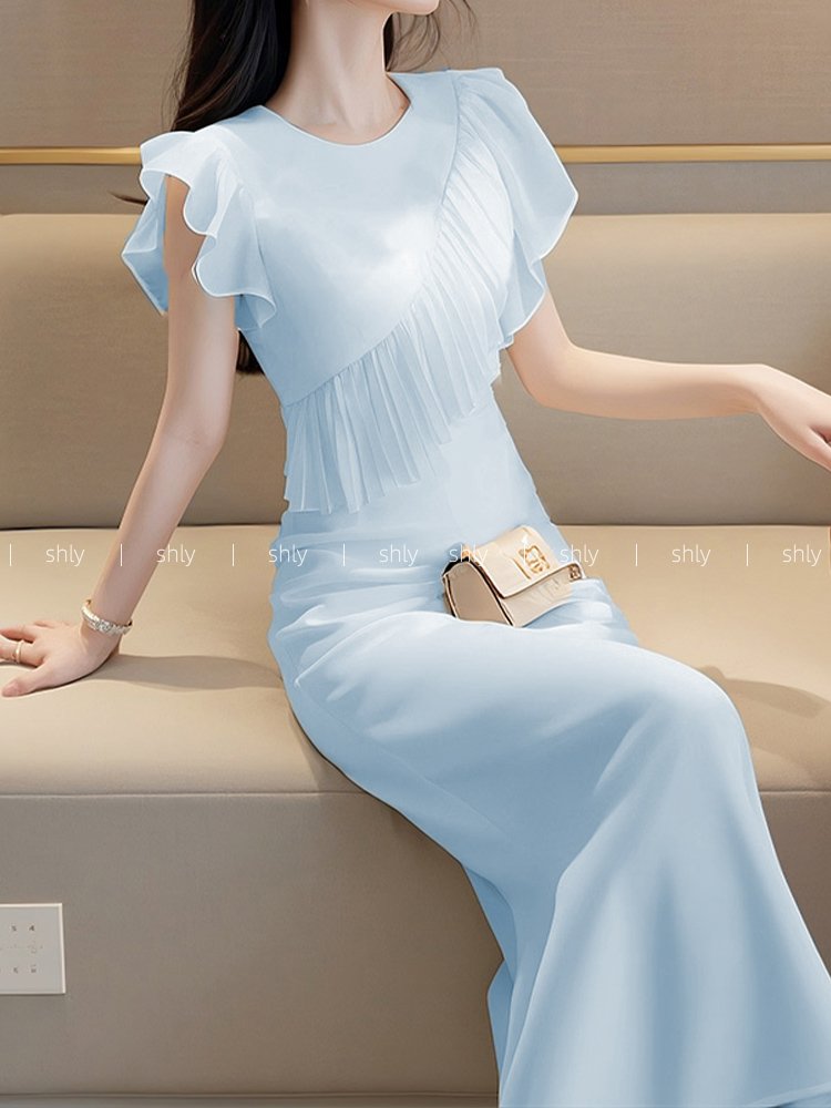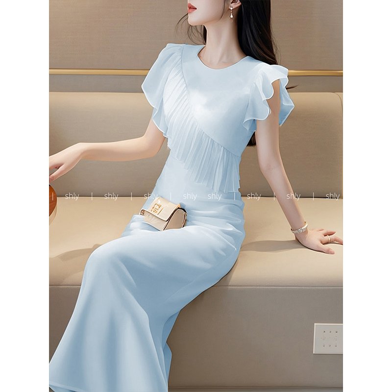 今年流行的漂亮超好看蓝色雪纺连衣裙