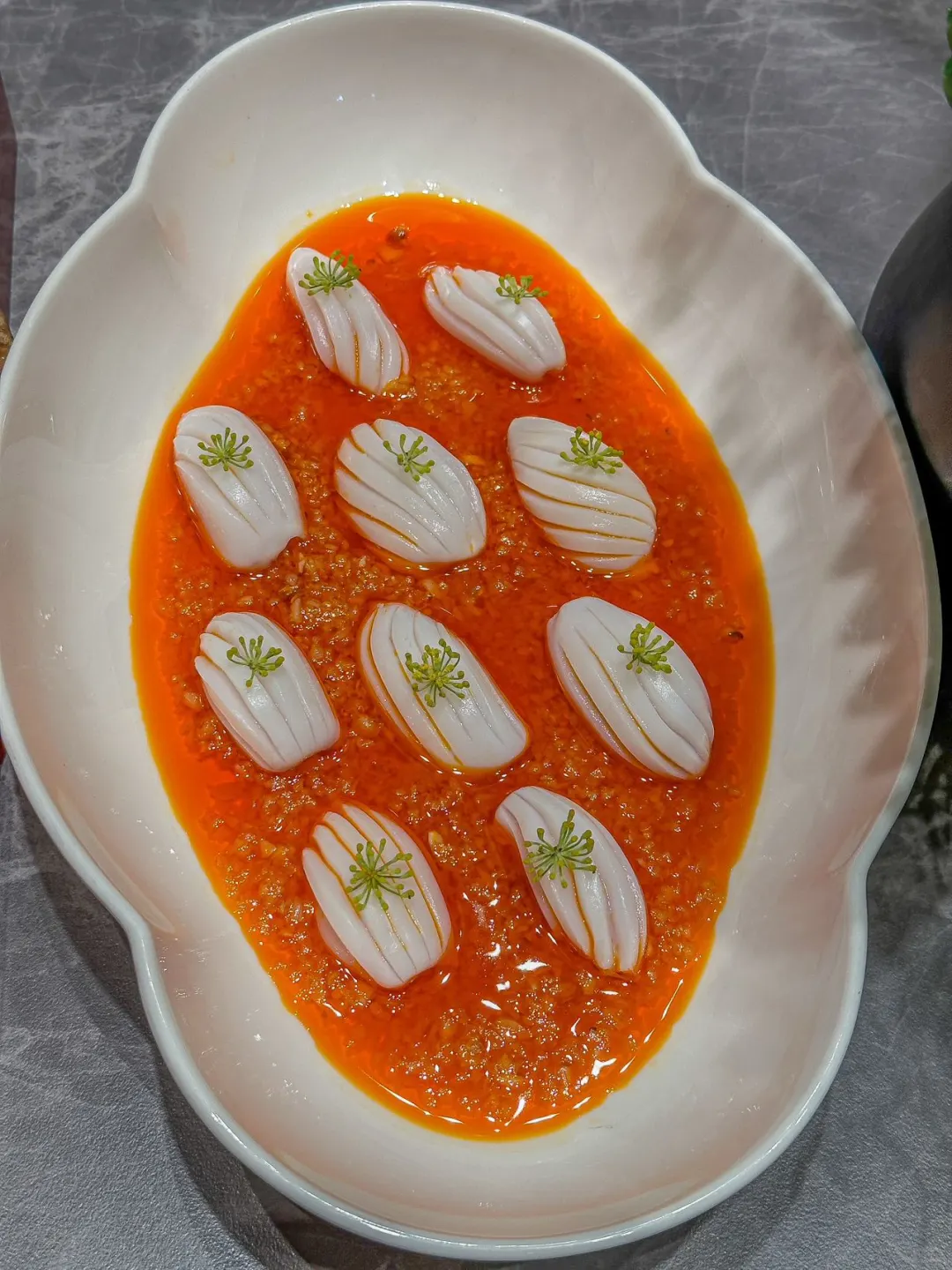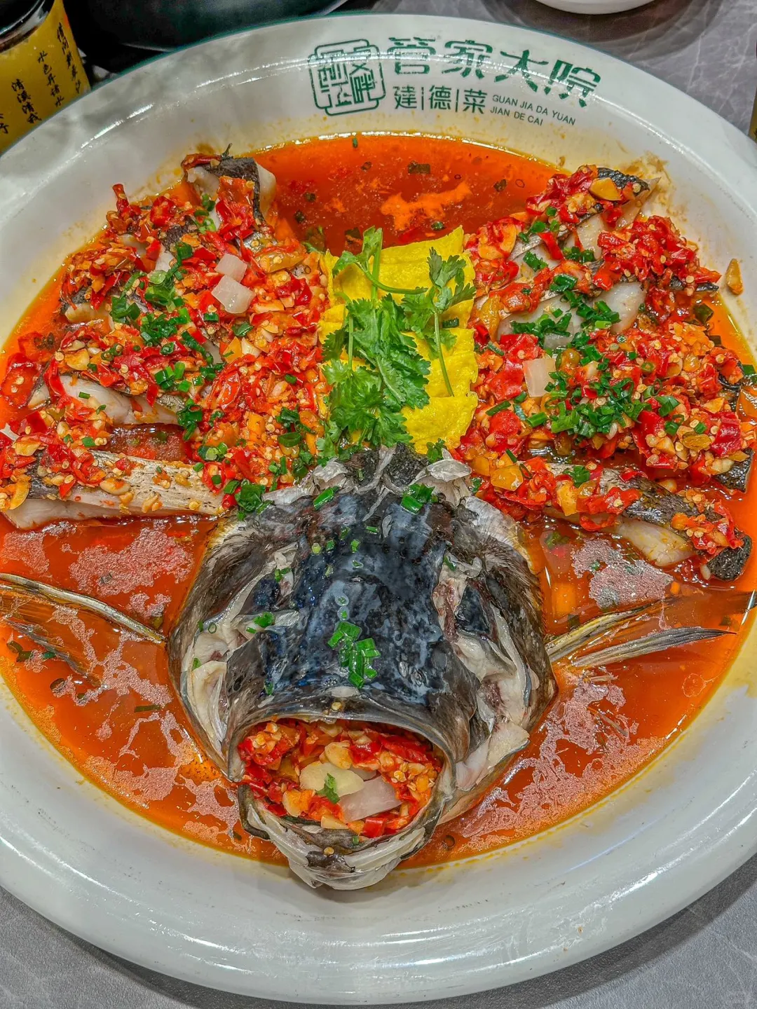 来一次就被惊艳到的建德菜! 环境高端典雅,分为包厢和大厅 非常适合商务宴请朋友聚餐来这里吃~ ✔️管家剁椒鱼头王🐟 不愧是店里面的招牌!桌桌必点! 鱼头超级大一个,烧制的非常入味 肉质鲜嫩美味,香辣鲜香! ✔️猪手焖鲍鱼 满满一大盘,里面的分量十足 鲍鱼➕猪脚采用红烧的手法 猪脚Q弹劲道,鲍鱼鲜嫩美味