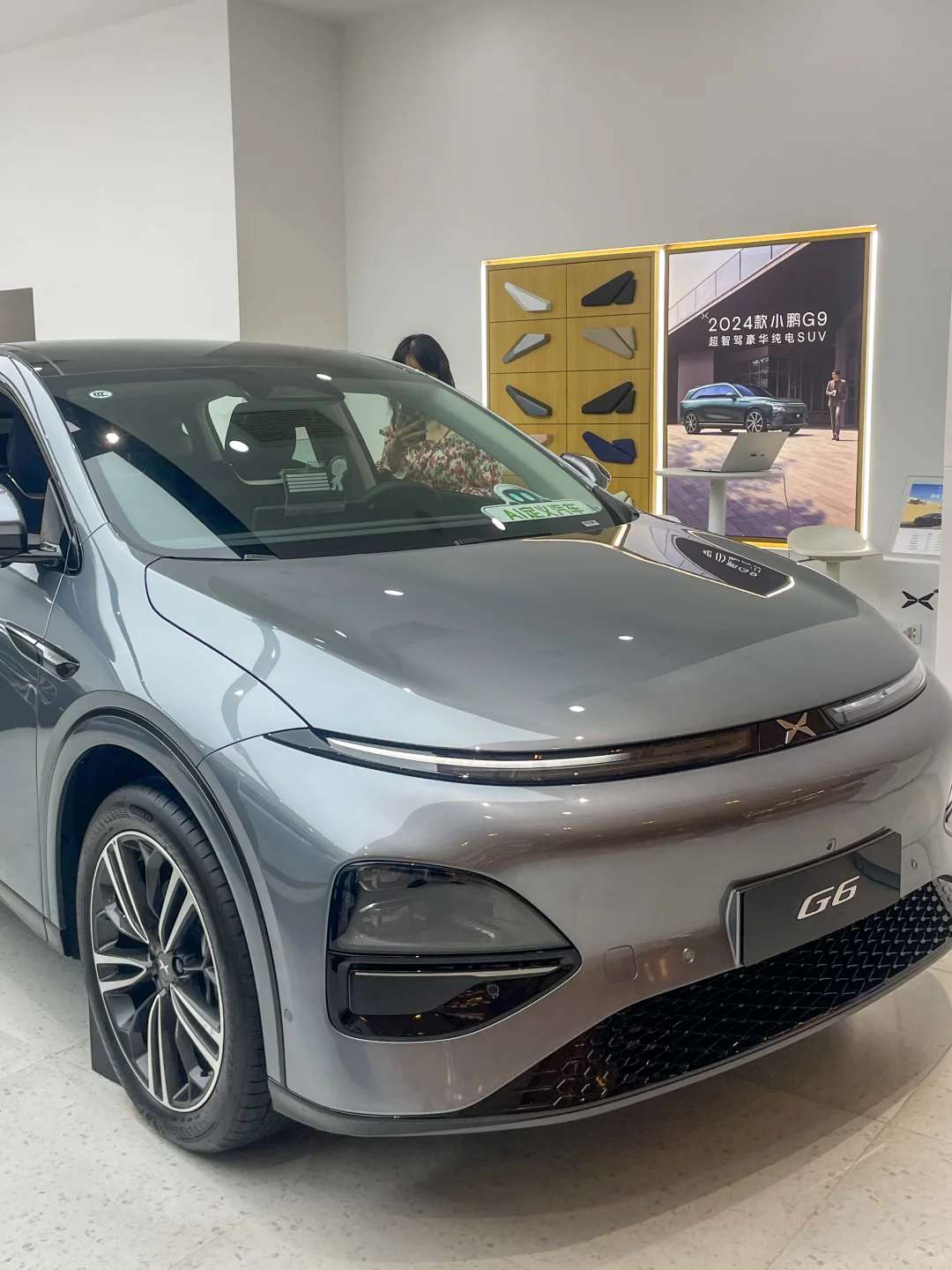一直都很喜欢的小鹏🚗的款式,赶紧拉上男朋友在附近的小鹏4S店预约了试驾。新款小鹏G6的设计非常前卫,车身线条流畅,整体造型充满科技感。前脸采用了家族式设计语言,大灯锐利,充满未来感。