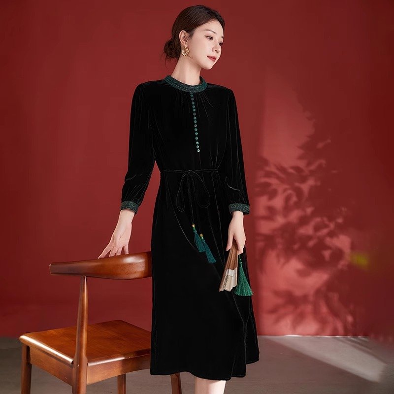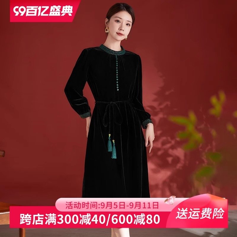 丝绒顺滑,轻盈如羽,秋日内敛奢华之选,绽放女性温婉光彩。连衣裙真丝连衣裙桑蚕丝连衣裙