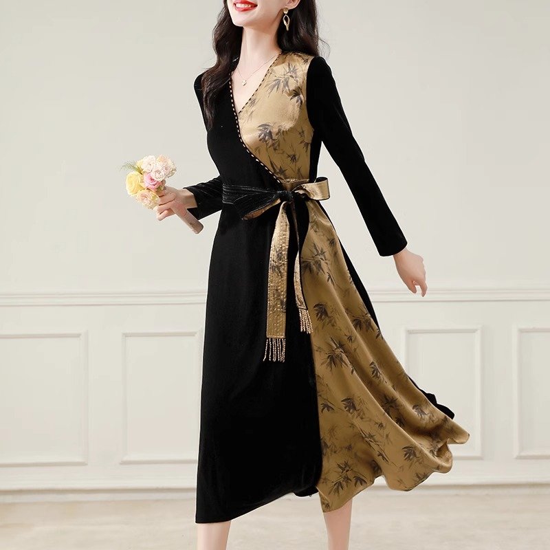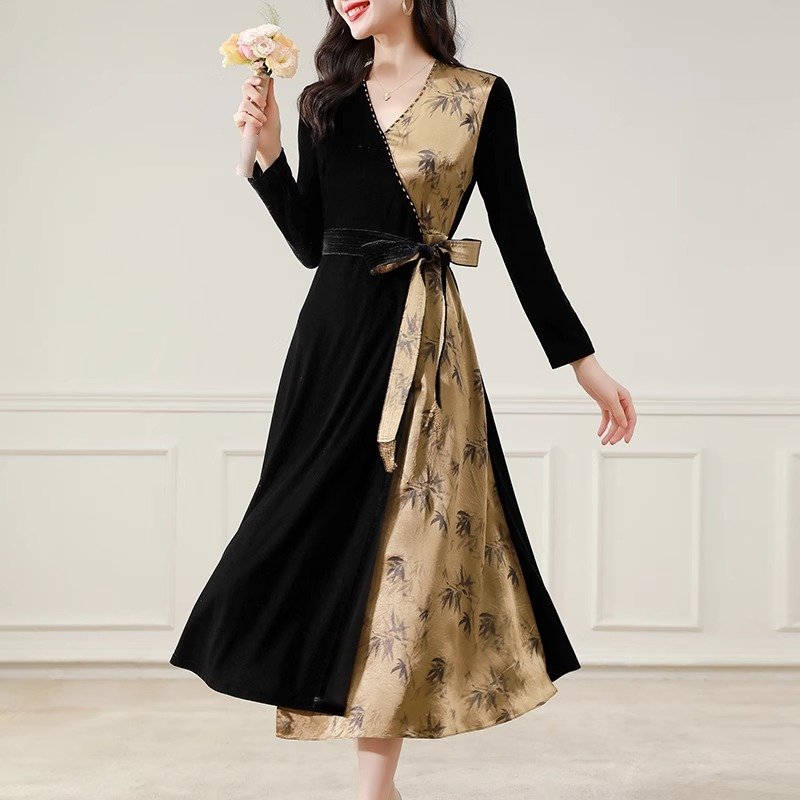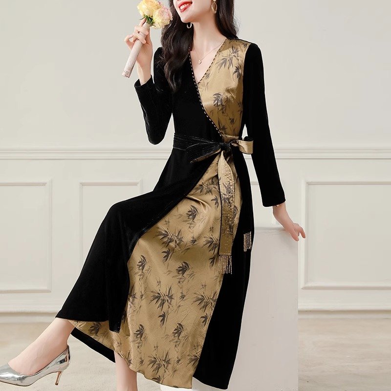金丝绒顺滑,轻盈如羽,秋日内敛奢华之选,绽放女性温婉光彩。连衣裙金丝绒连衣裙