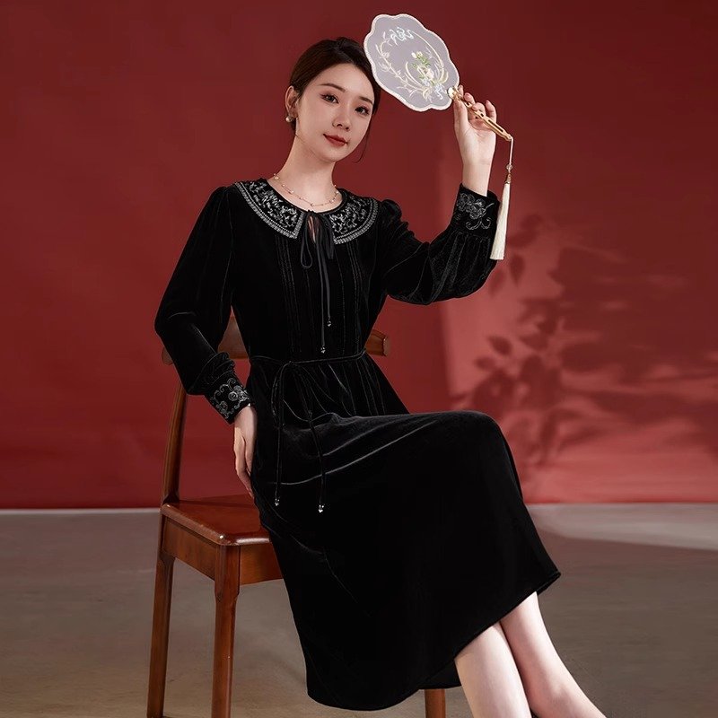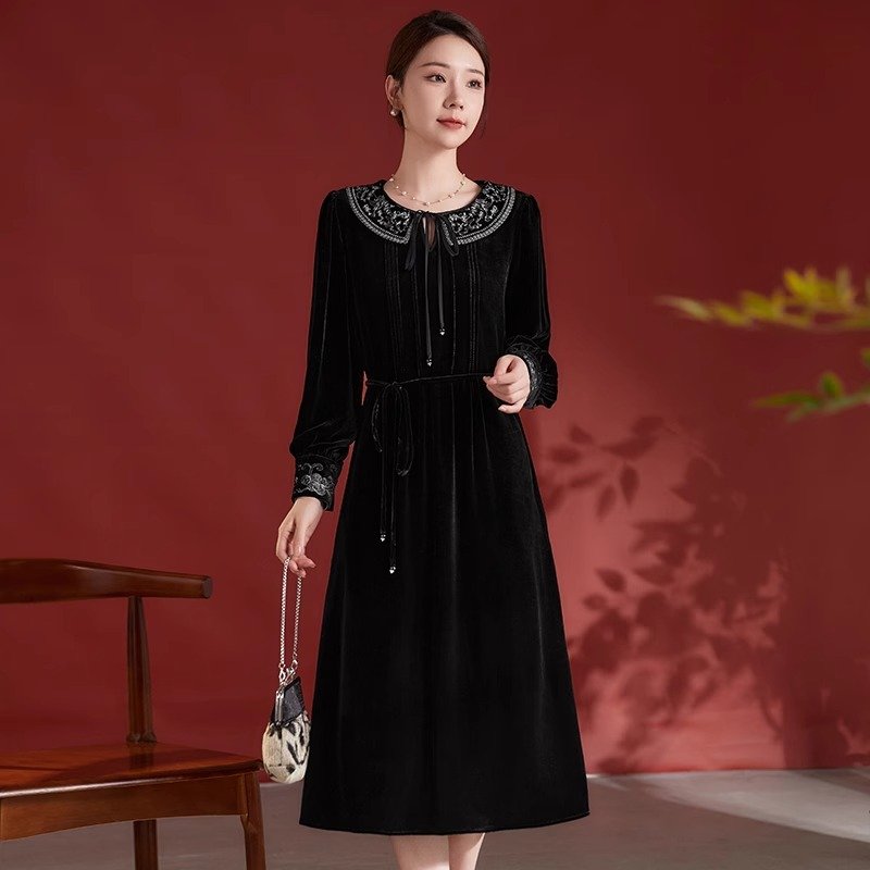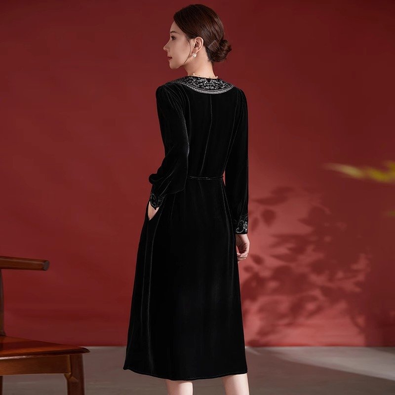 丝绒顺滑,轻盈如羽,秋日内敛奢华之选,绽放女性温婉光彩。连衣裙真丝连衣裙桑蚕丝连衣裙