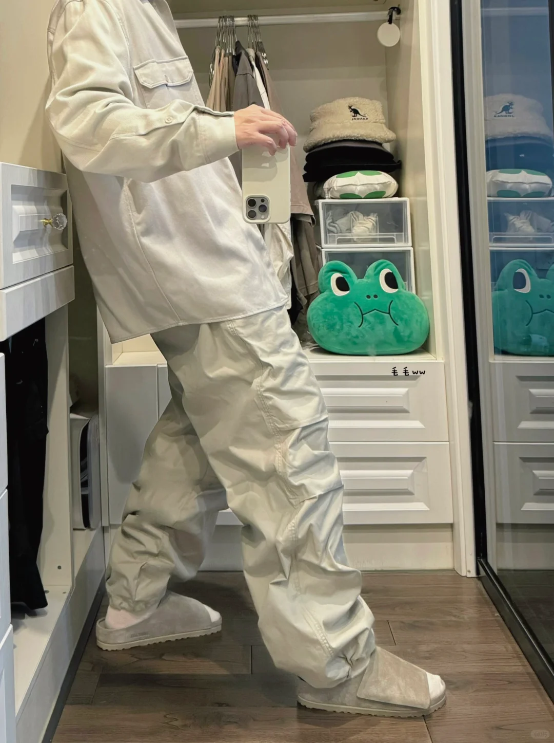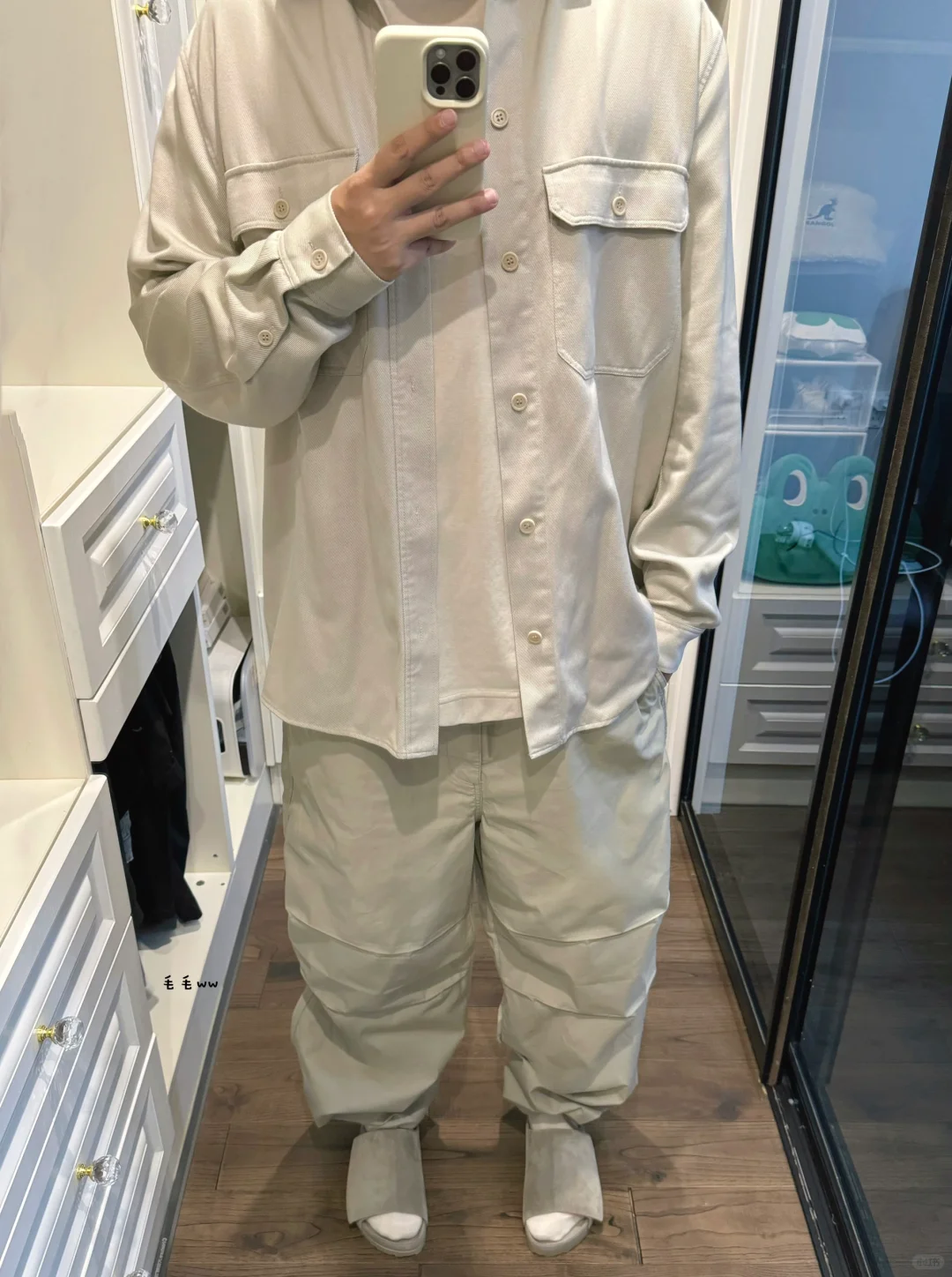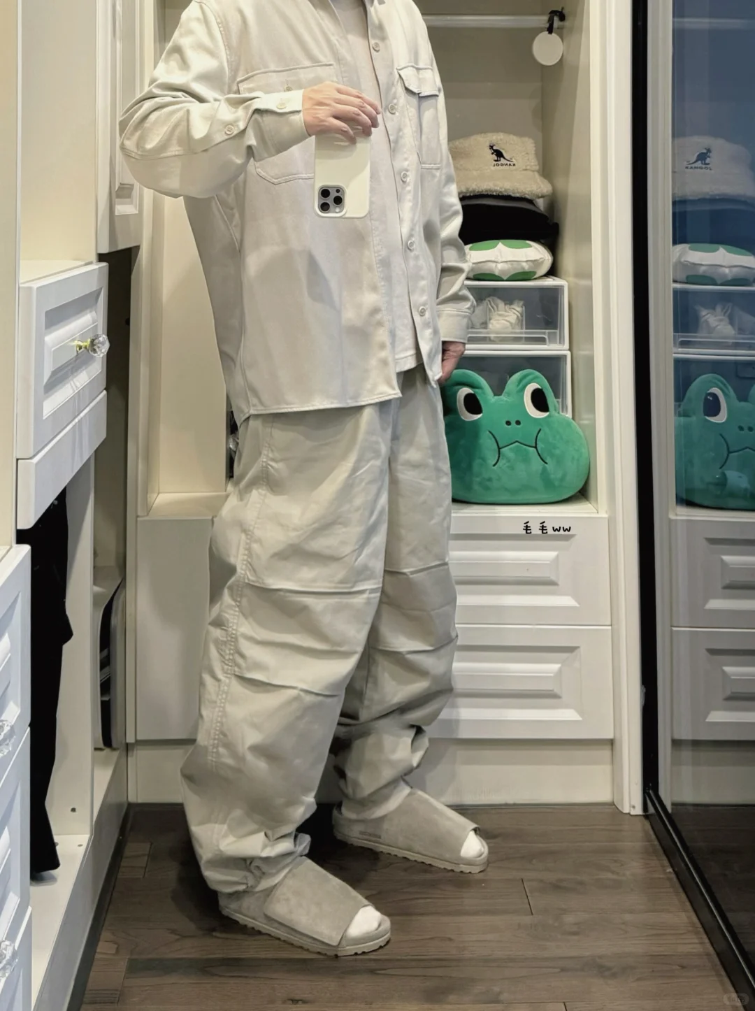 -C系列降落伞裤,相比U系列更加宽松,阔腿版型,抽绳可玩性更高 . -整身米灰色系,上装衬衫搭配下装伞裤,秋季来双勃肯再合适不过了 . —————— . ✏️本人178cm75kg 球鞋尺码265mm(正常EU42) . 💭以上均为我个人观点,不喜勿喷,欢迎讨论。