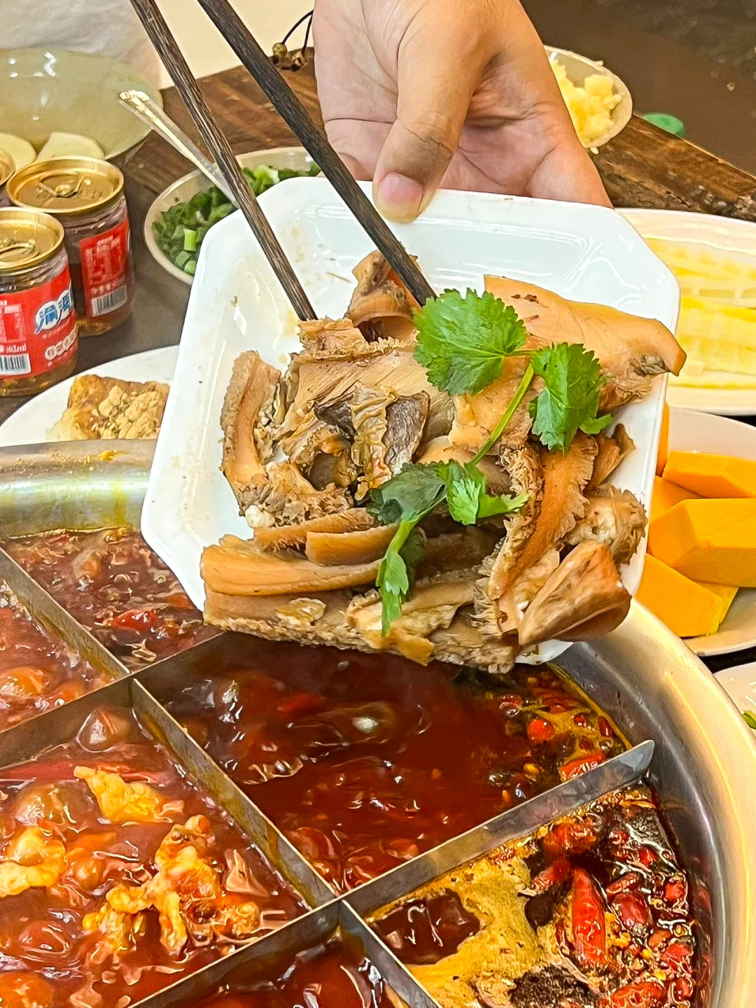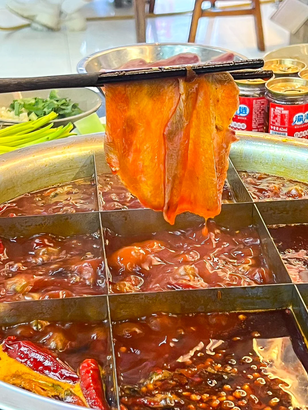 也是跟着丹妮妮妮吃对地方了,她强烈推荐的这家店太有魔力了,作为解放碑少有的全牛火锅,我吃过的火锅没有一家能比得上,完完全全的碾压! 麻辣鲜香的锅底,煮啥啥都香,吃过的就没有说过不好吃的!! 1️⃣现切鲜牛肉 每一份都是现点现切的,非常新鲜,肉食党的福音,推荐必点 2️⃣鲜牛舌 第一次在火锅里面吃到这个真的把我狠狠惊艳住了,又嫩又爽口 3️⃣卤香牛大肚 口感层次丰富,卤香味十足,感觉不用烫火锅都可以直接下着饭吃 ✨董妈火锅(解放碑店)