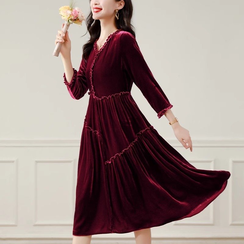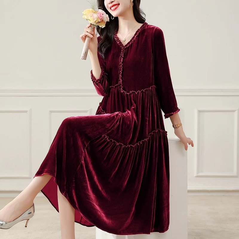 金丝绒顺滑,轻盈如羽,秋日内敛奢华之选,绽放女性温婉光彩。连衣裙金丝绒连衣裙
