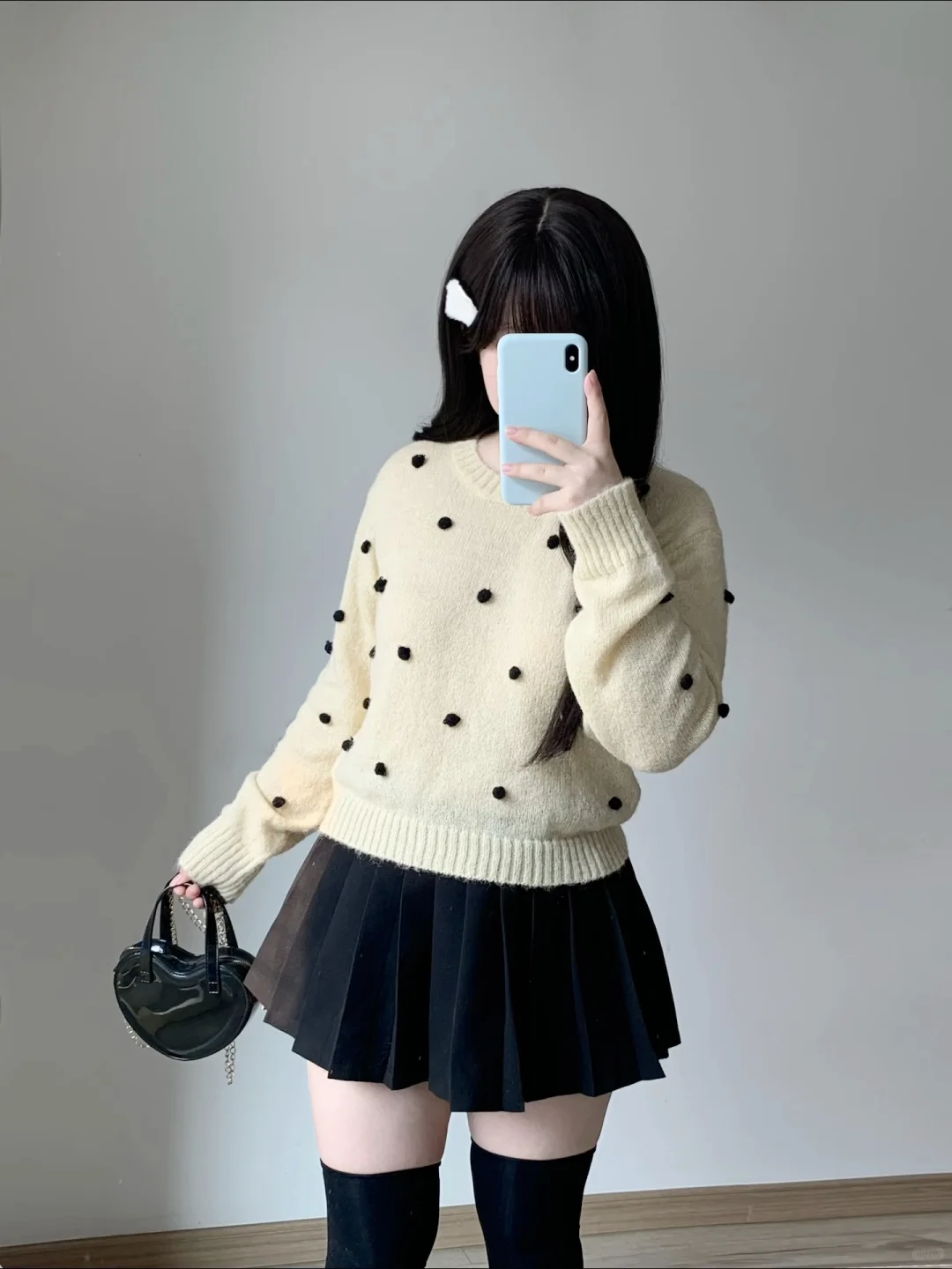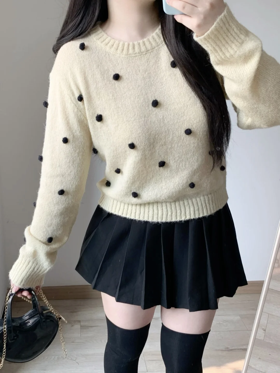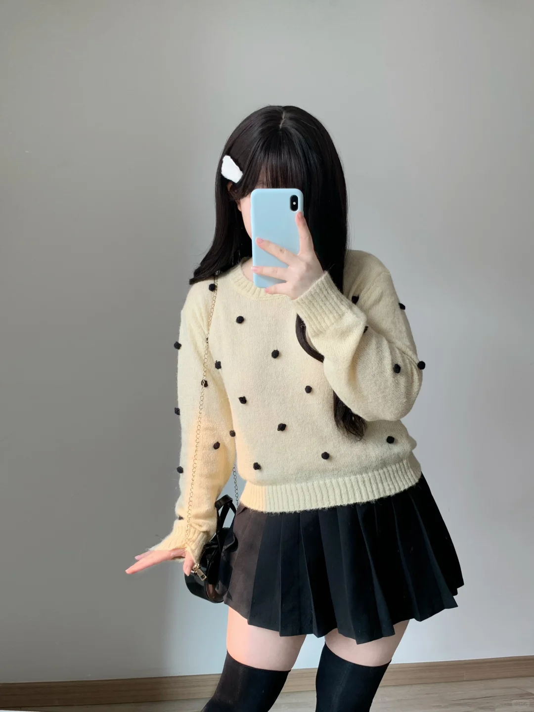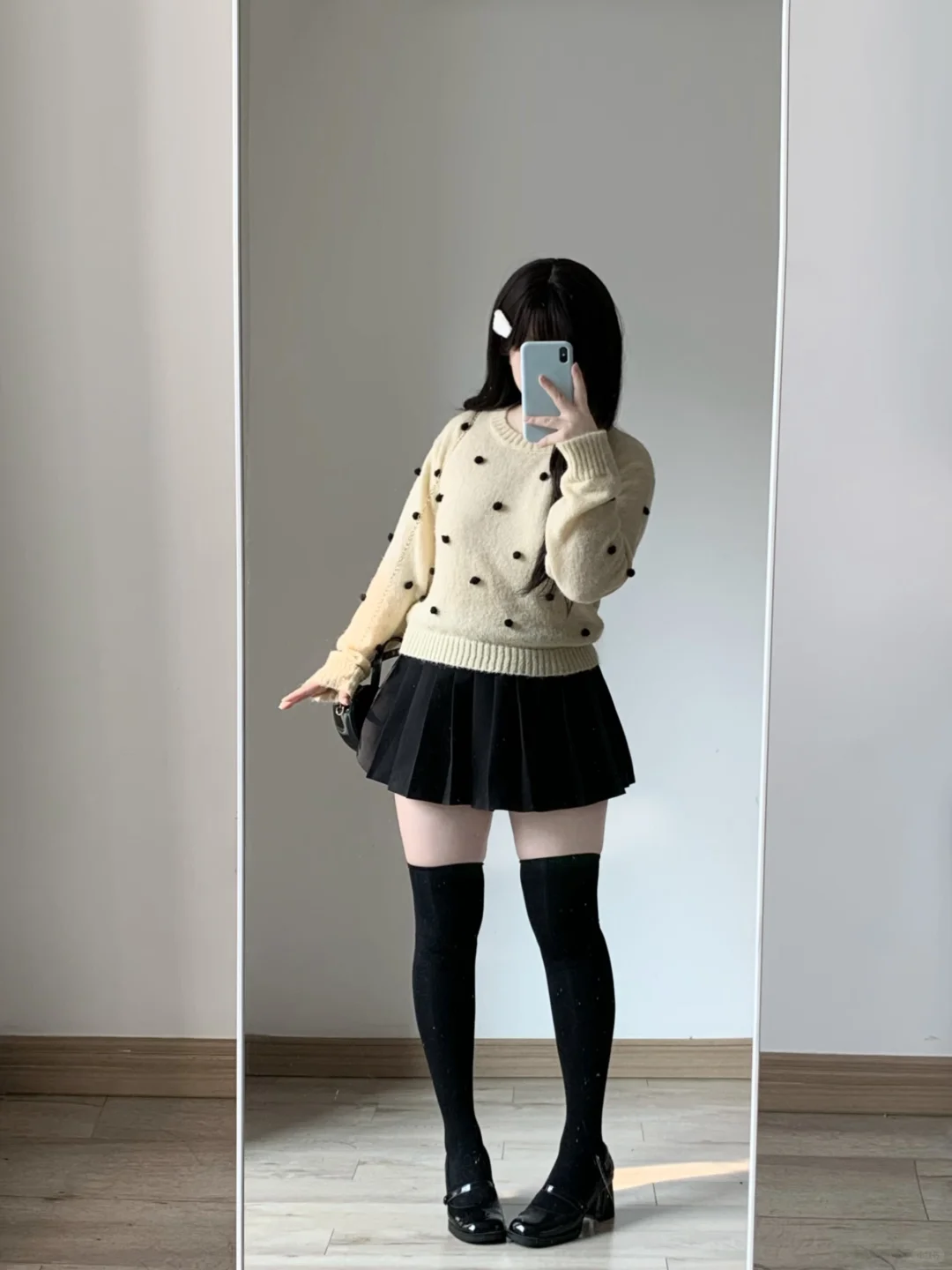160 120|微胖乖巧甜妹穿搭🍂波点毛衣好可爱