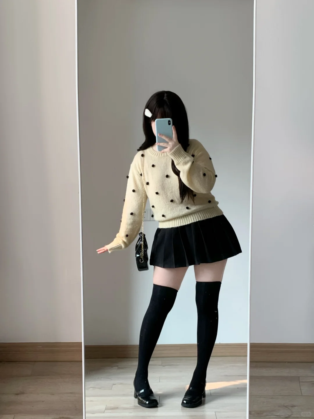 160120|微胖乖巧甜妹穿搭🍂波点毛衣好可爱
