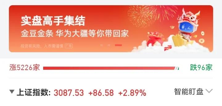 牛市来了吗? 大A股发疯了,四天时间,从2700点暴涨至近3100点! 国庆节前来这么一波操作,这是让股民们长假期间放肆的玩耍,肆意的消费。 没上车的朋友也不要盲目跟风,要牢记:股市有风险,投资需谨慎!