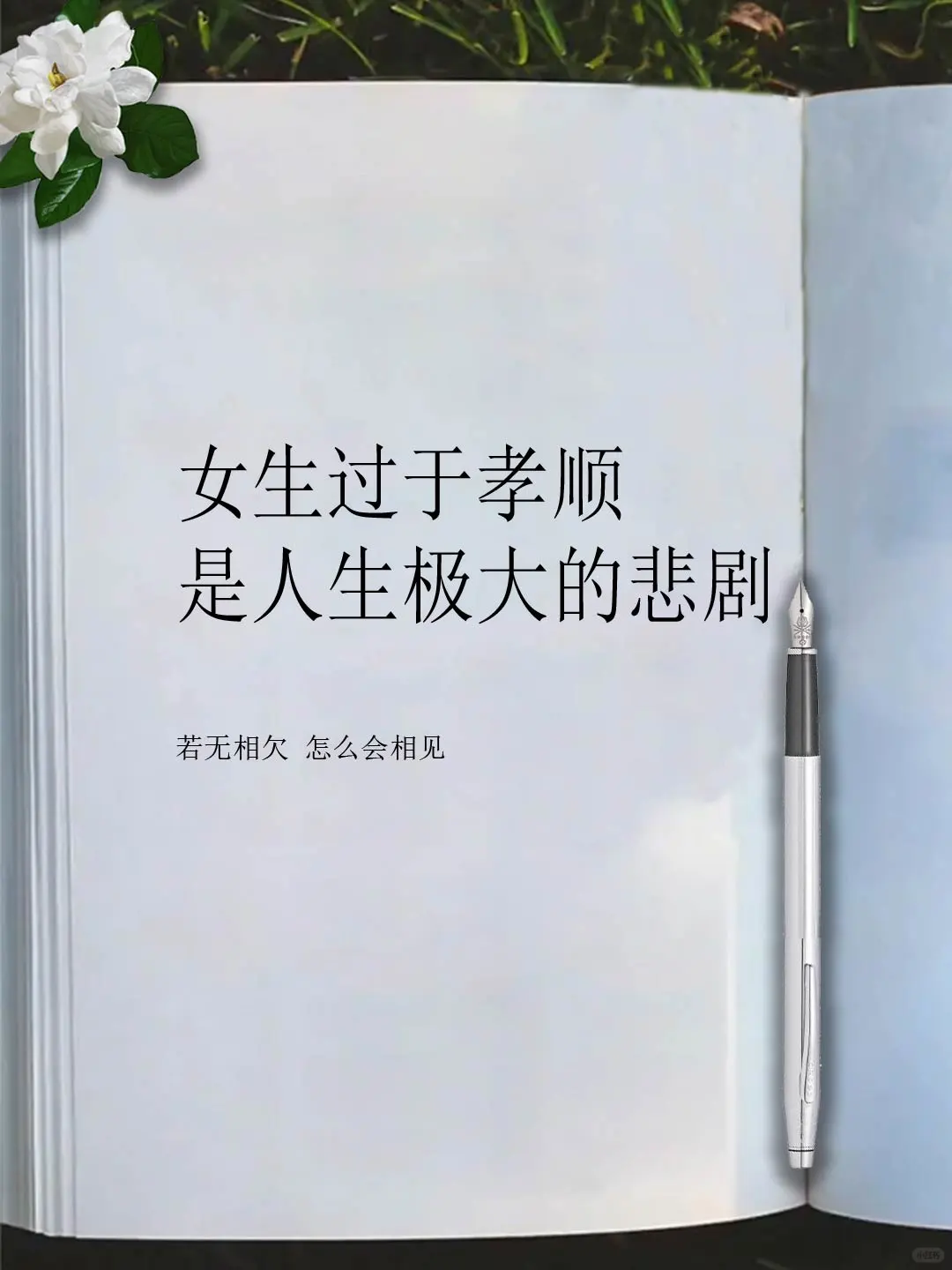 去爱他们,关心他们,这没错,但不意味着你要背负他们的命运。你有千万种方式表达爱意表达感激,但最不应该的就是牺牲自己的人生去承担他们的责任。