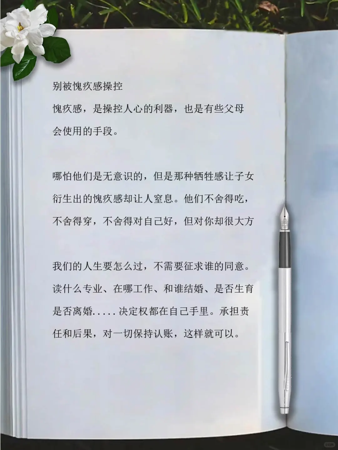 我们本身就不是完美的人,无法要求父母是完美的父母。理解他们的用心,包容他们的缺失接纳他们的局限,去关心和爱他们,但不背负他们的命运。
