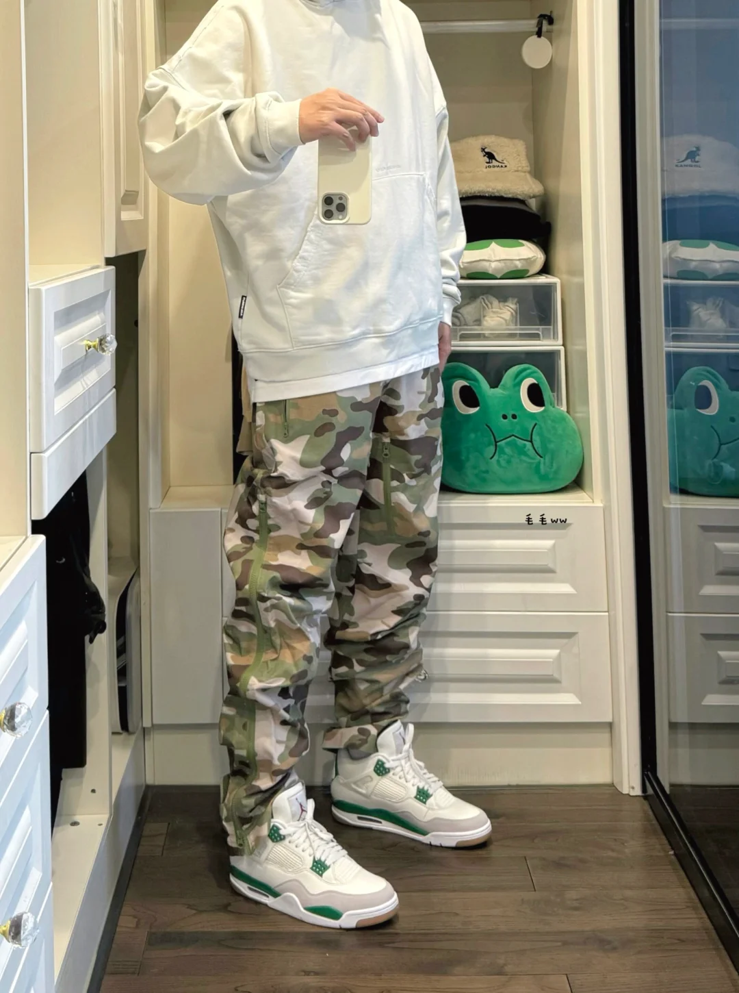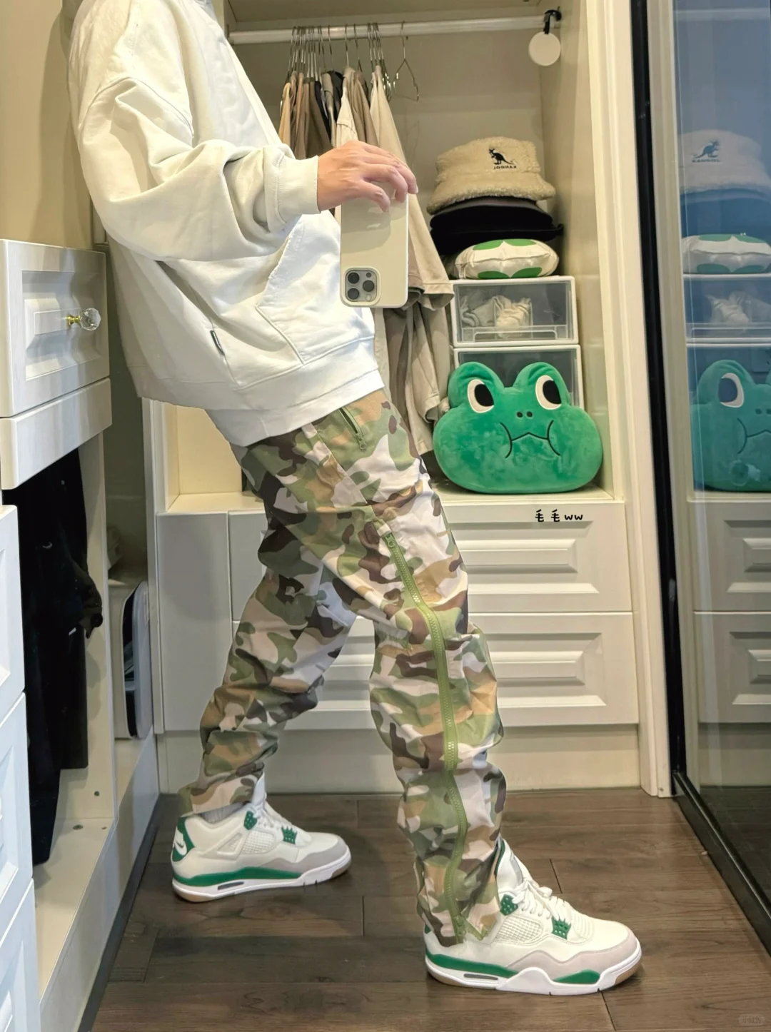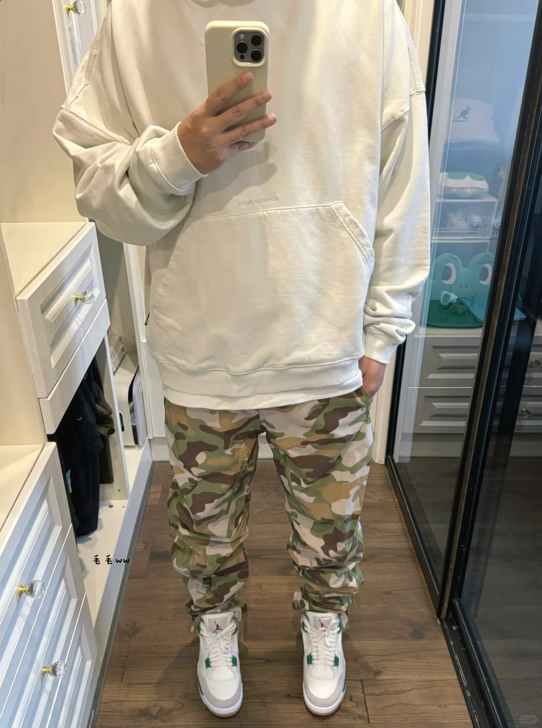 -没有男生能拒绝迷彩裤,硬朗的风格,沙漠的色调,非常适合秋冬季穿搭 . -除了元素的呼应,建议多运用白色,不管是内搭还是球鞋,整体干净简洁 . —————— . ✏️本人178cm75kg 球鞋尺码265mm(正常EU42) . 💭以上均为我个人观点,不喜勿喷,欢迎讨论。