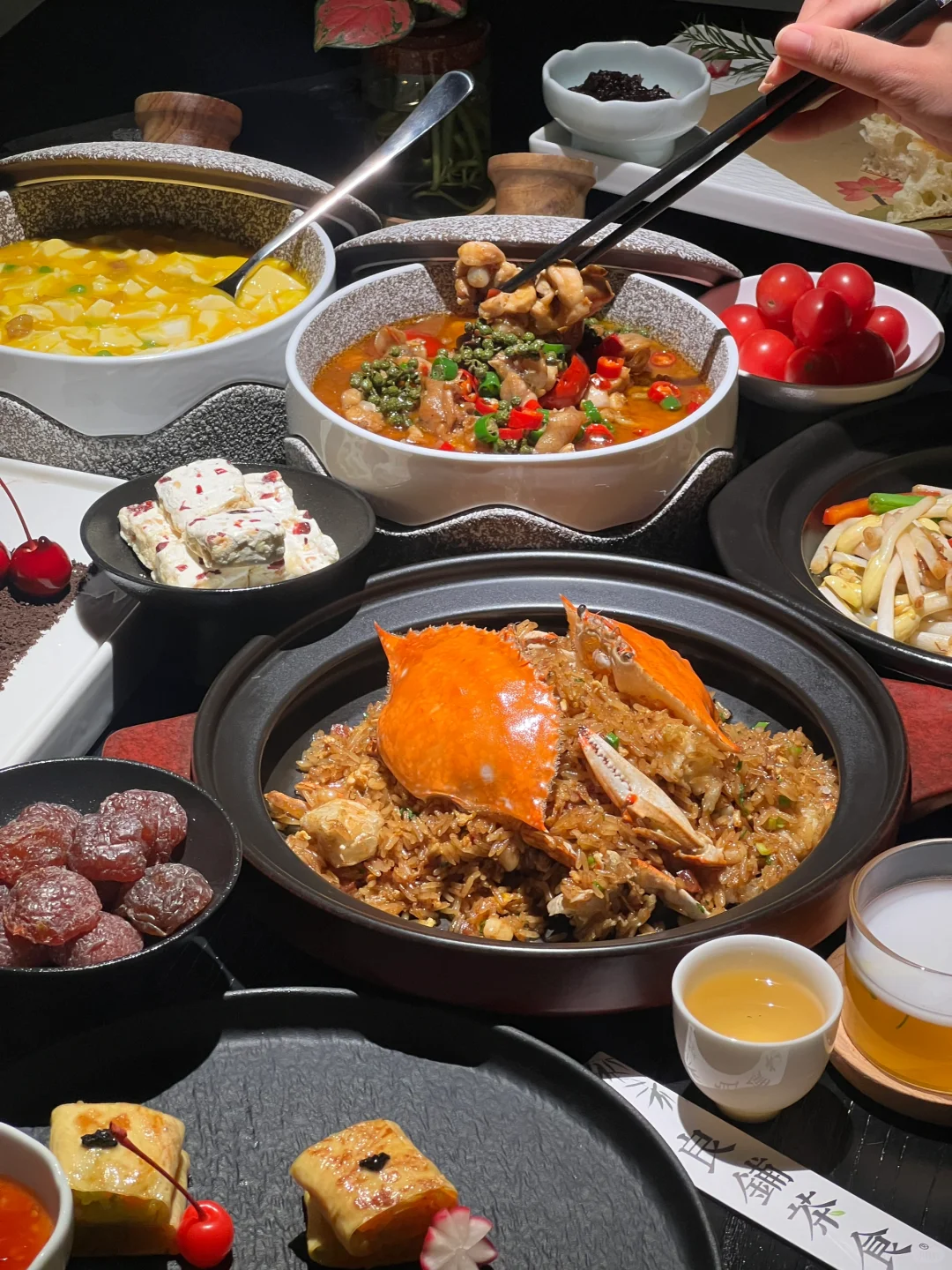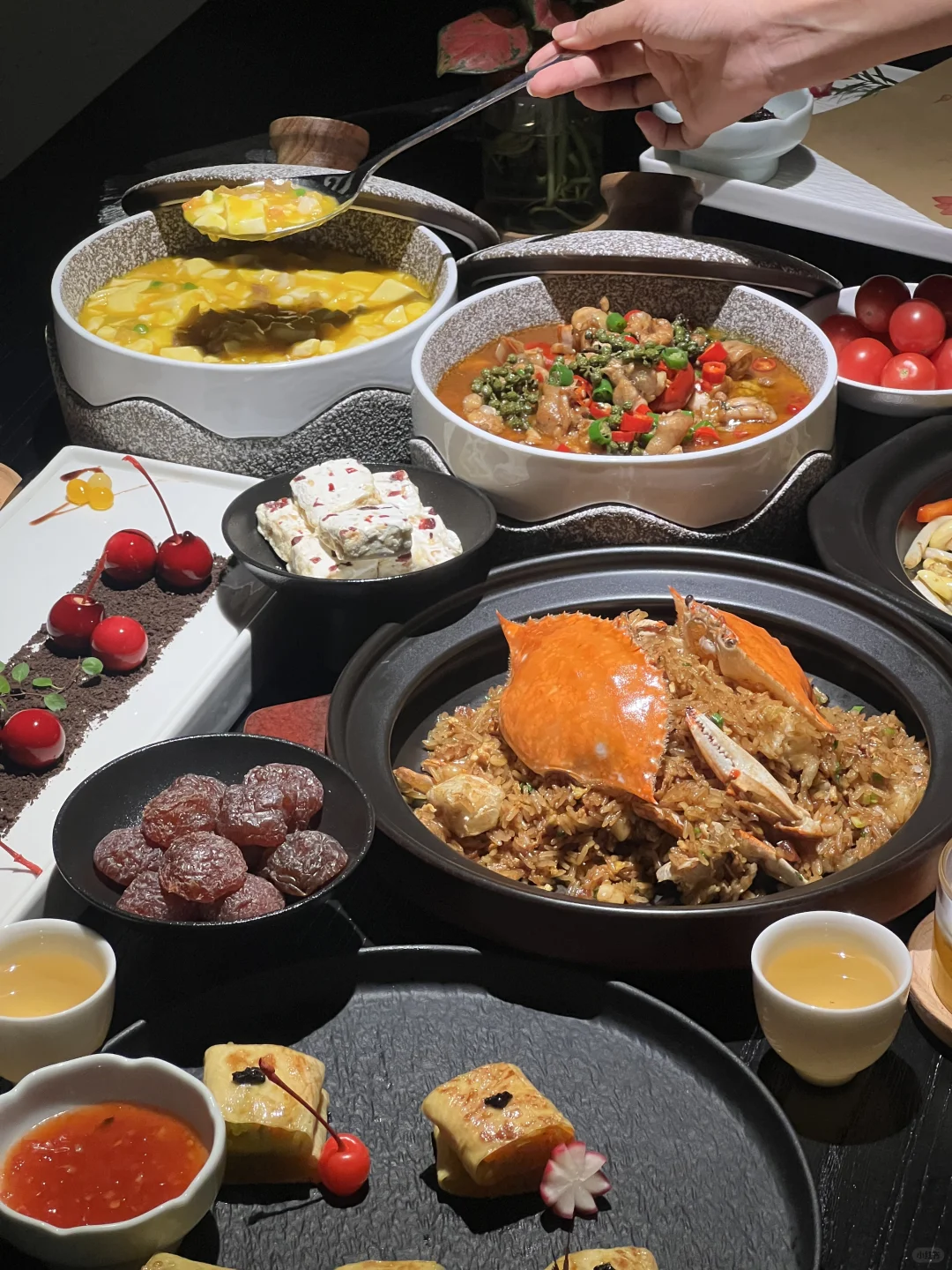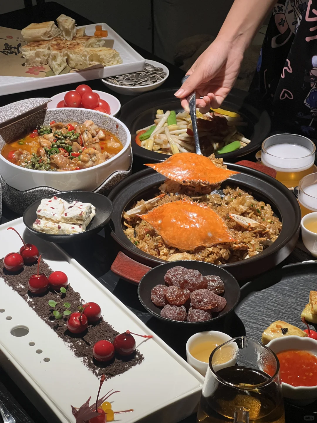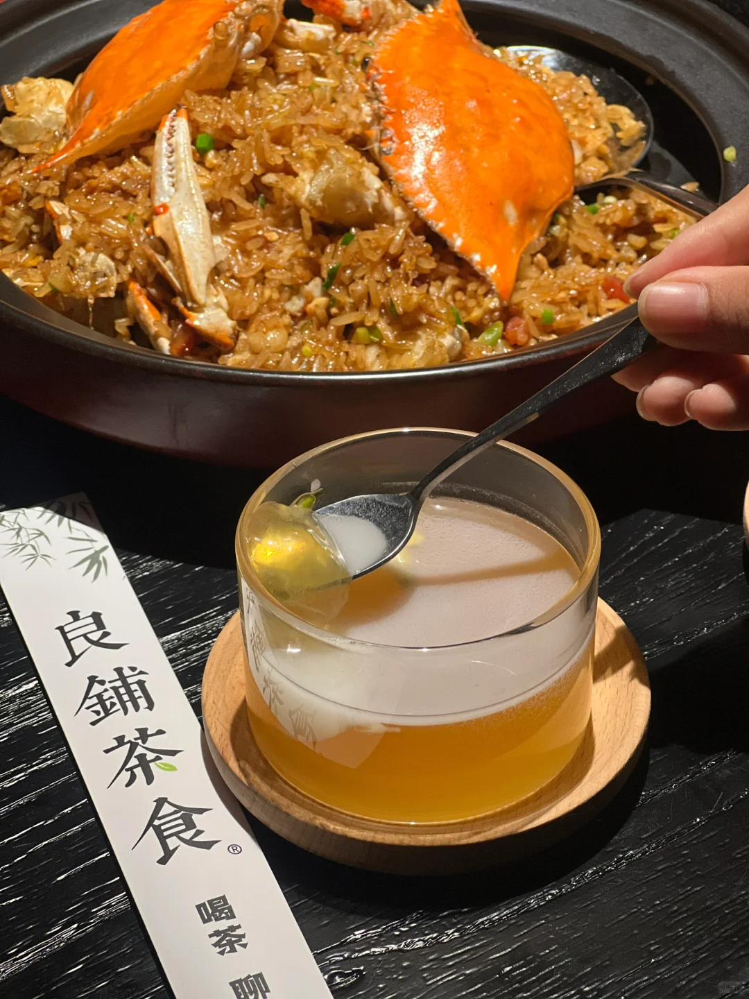好吃到无语!!是种什么样的体验🥺 这樱桃🍒鹅肝的造型真的令我大开眼界 出品真的好精致!!咬下去一口酸酸甜甜的外表搭配着鹅肝的嫩!!爱吃酸甜口的宝🉑尝试一下 良铺招牌素烧鹅🦢 素烧鹅还是淮扬菜的代表呢!馅料也是丰富多样 招牌香米炒蟹🦀 大只螃蟹进行点缀!米饭也是很有嚼劲的! 炒出来油香油香的🥺被朋友一致认为是全场最佳 店里的包间也比较多私密性比较好👍 在这商务洽谈或者是闺蜜聚会都很适合呀~ 🏠良鋪茶食(东风路店)