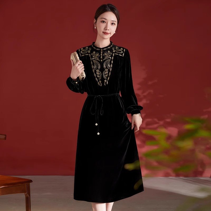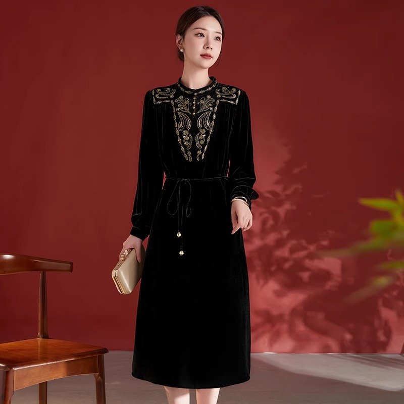 丝绒顺滑,轻盈如羽,秋日内敛奢华之选,绽放女性温婉光彩。连衣裙真丝连衣裙桑蚕丝连衣裙