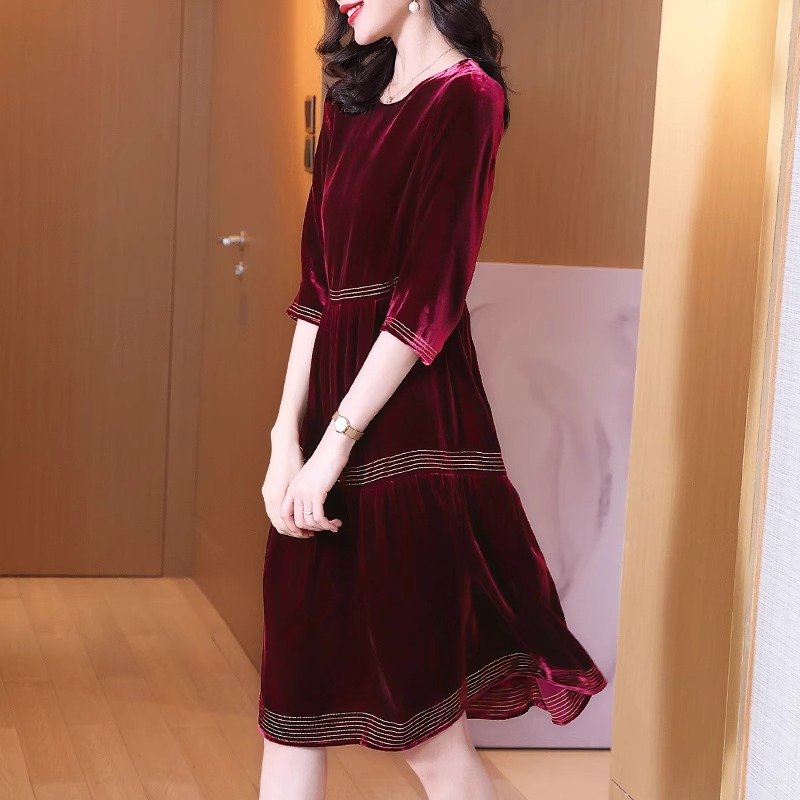 金丝绒顺滑,轻盈如羽,秋日内敛奢华之选,绽放女性温婉光彩。连衣裙金丝绒连衣裙