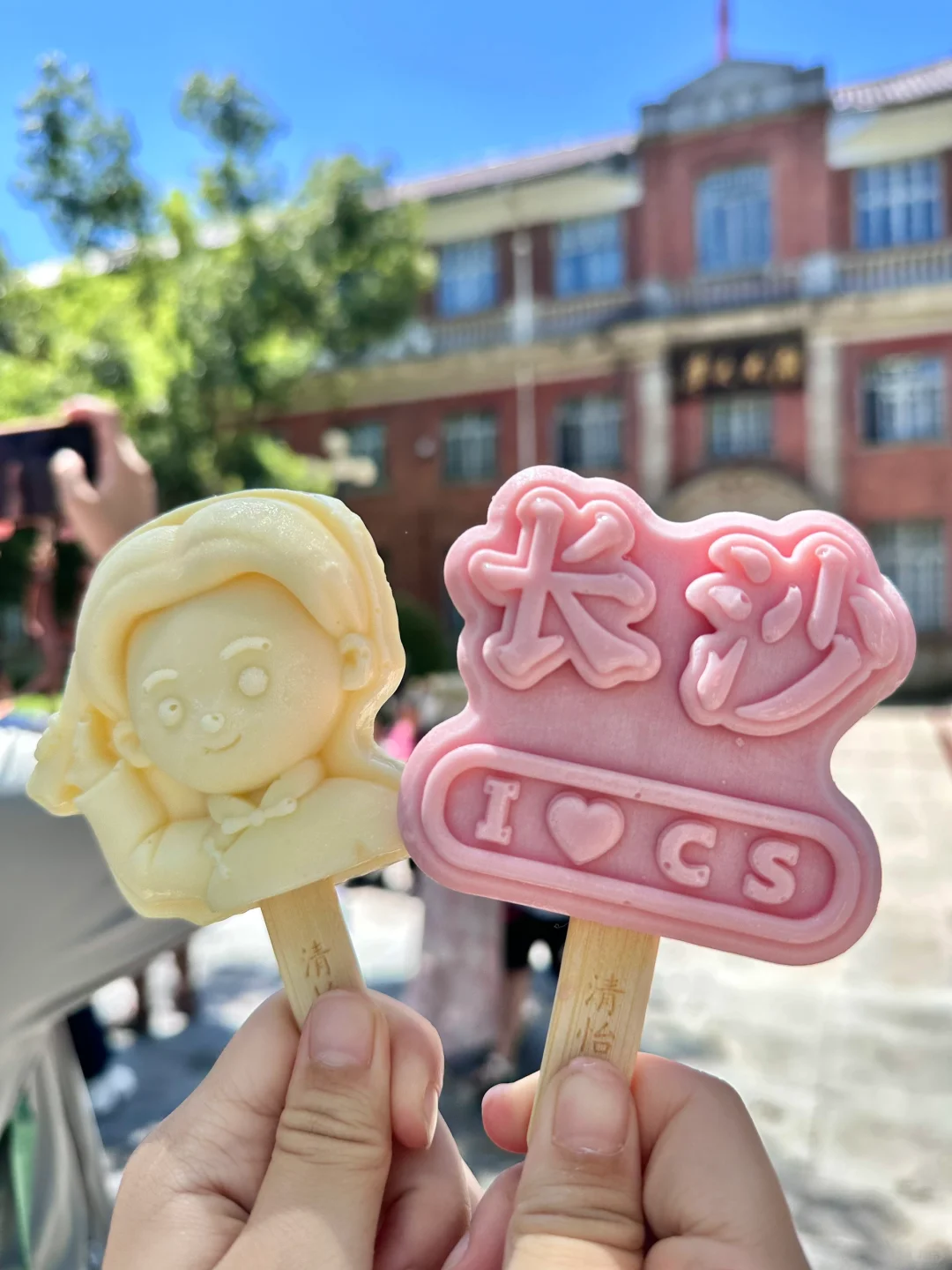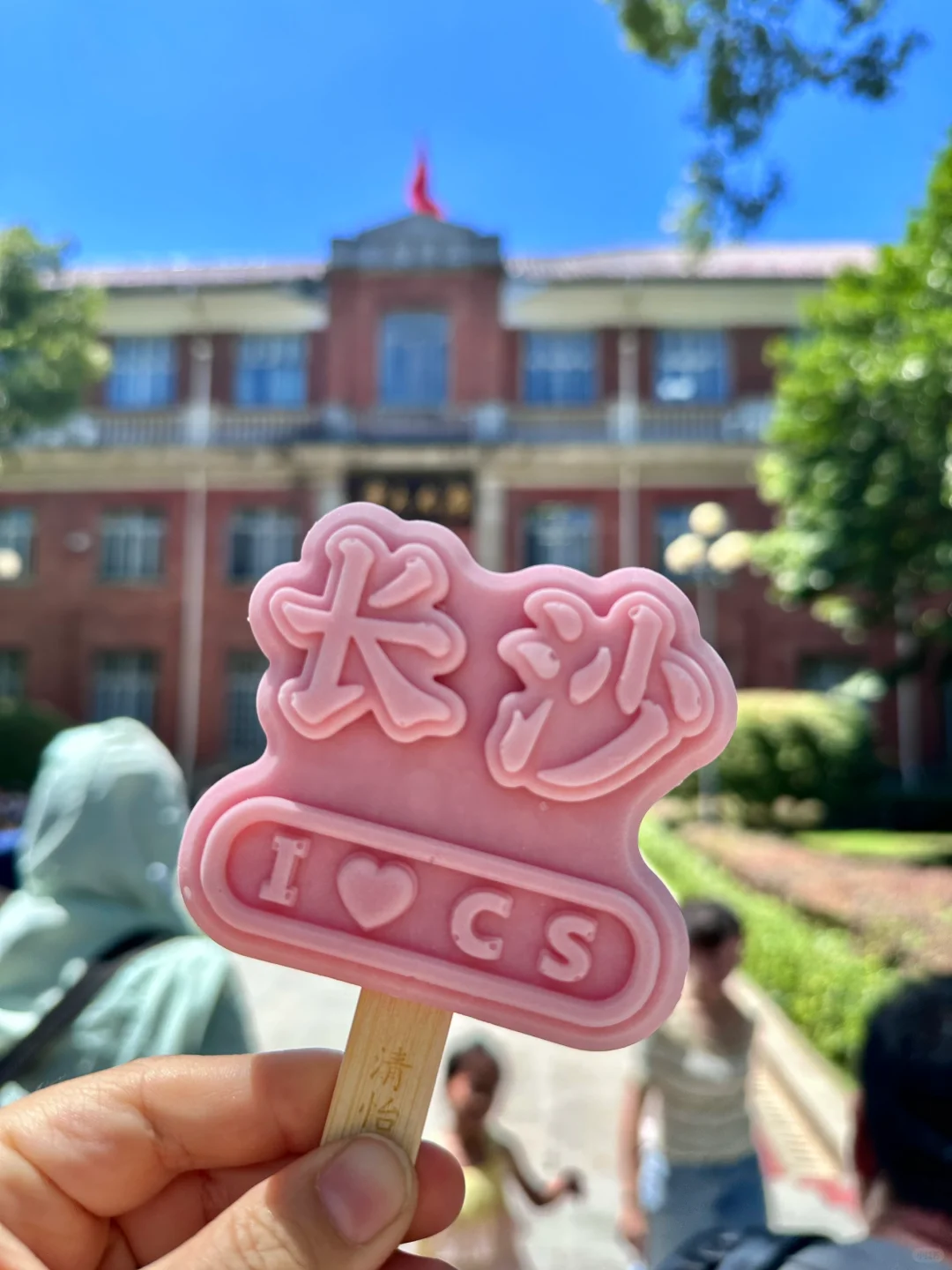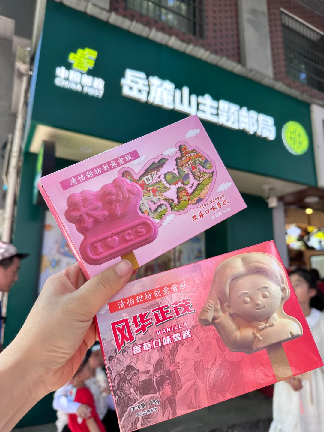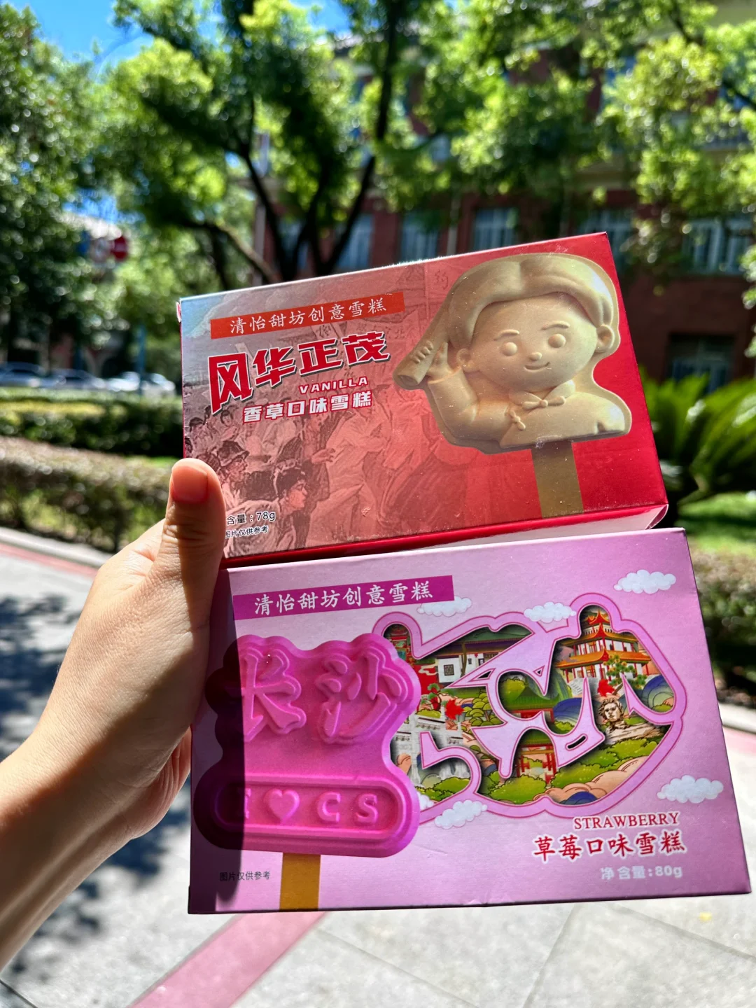 被长沙这个创意雪糕刷屏了! 来长沙旅游不能错过!拿这个冰淇淋拍照打卡真是太出片了!粉红色的“我爱长沙”15rmb一支,芒果味儿的“风华正茂”18rmb一支 📍地址在登高路霸王茶姬斜对面~ ✨✨爬岳麓山记得提前在“岳麓山景区”小程序预约~ 🚇地铁到湖南大学/溁湾镇两个站,都可以上山,是两条不同的路 ✔️麓山南路小吃推荐: 1⃣️神奇的鸡蛋灌饼 2⃣️臭名远扬臭豆腐 3⃣️天马牛肉饼 4⃣️志菲空心粉