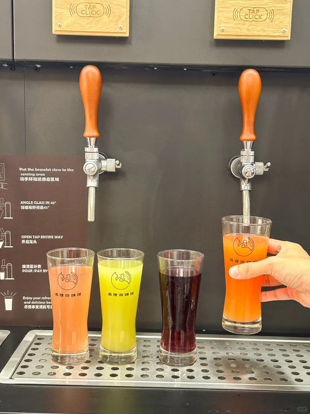 在中山亭附近,新开的精酿小酒馆!✔️啤酒是自选形式,自己刷卡选口味,老板会给一个非常可爱的猫爪挂件🐱,刷卡就可以自助选酒,可以一次喝20种口味,爱尝鲜的姐妹真是有福了! 🥂试喝了【莓烦恼】【西柚茉莉】【蓝莓西打】都是适合女生喝的小酒,酒精度数不高,才3-4度,果汁的口感,颜色也很漂亮。 🌿店里主打中式风,庭院有种苏州园林的美感。真的随手拍照都很好看! 🍻酒水价格也非常友好,人均几十块钱,周末和朋友小酌聊聊天真的惬意🌃店里也有自己做的凉菜卤味,配啤酒很不错。🈺而且新店开业还🈶️活动