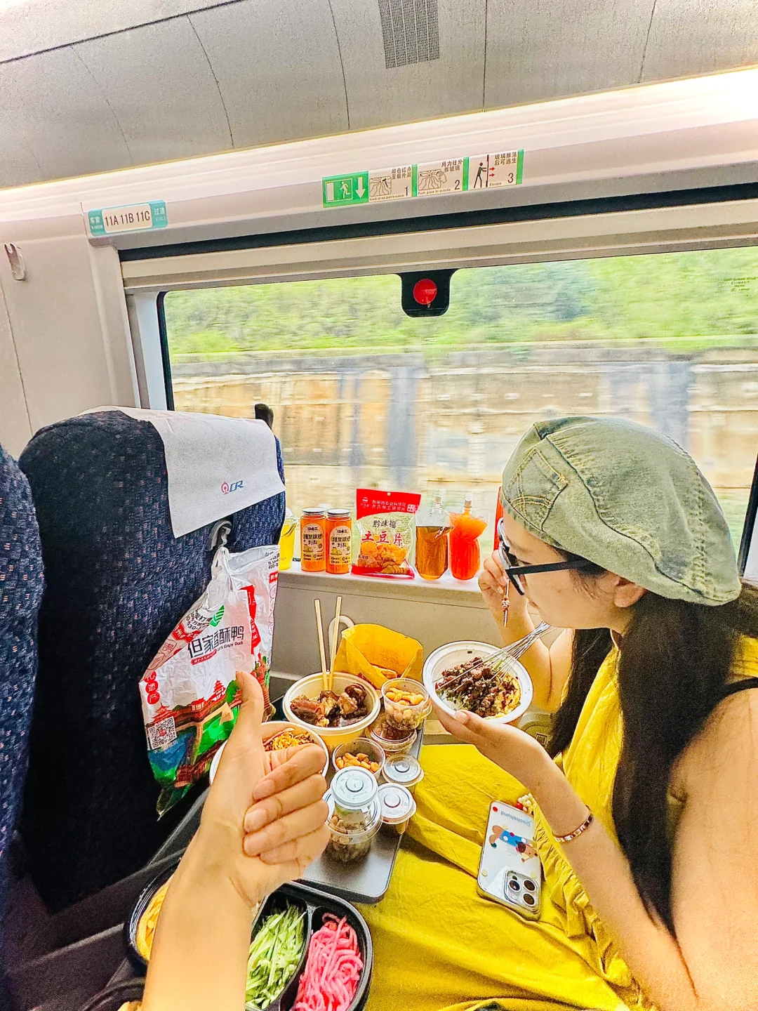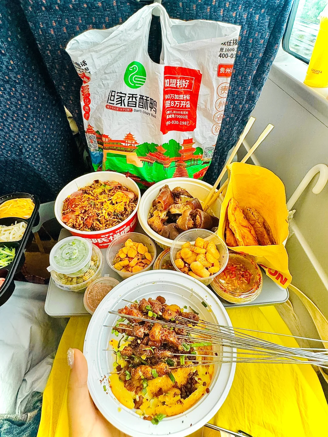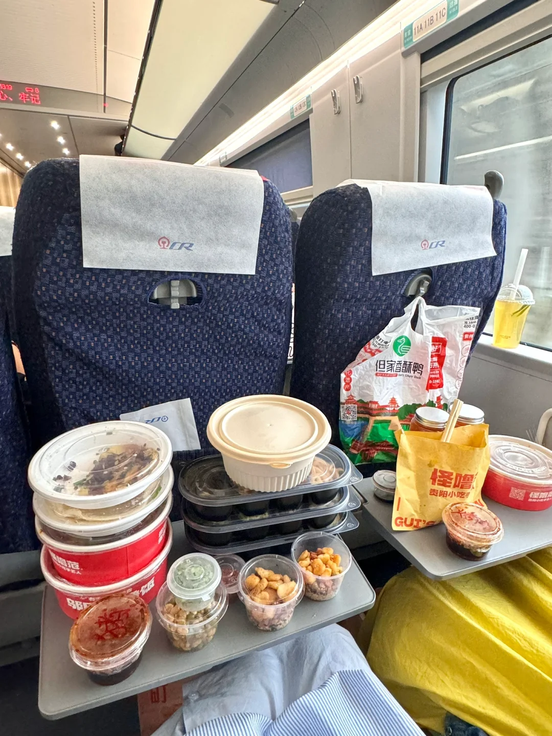 贵阳真的太好吃了!在高铁上吃丝娃娃捏!hhh 幸福指数别太高🥹!!!开心~ -