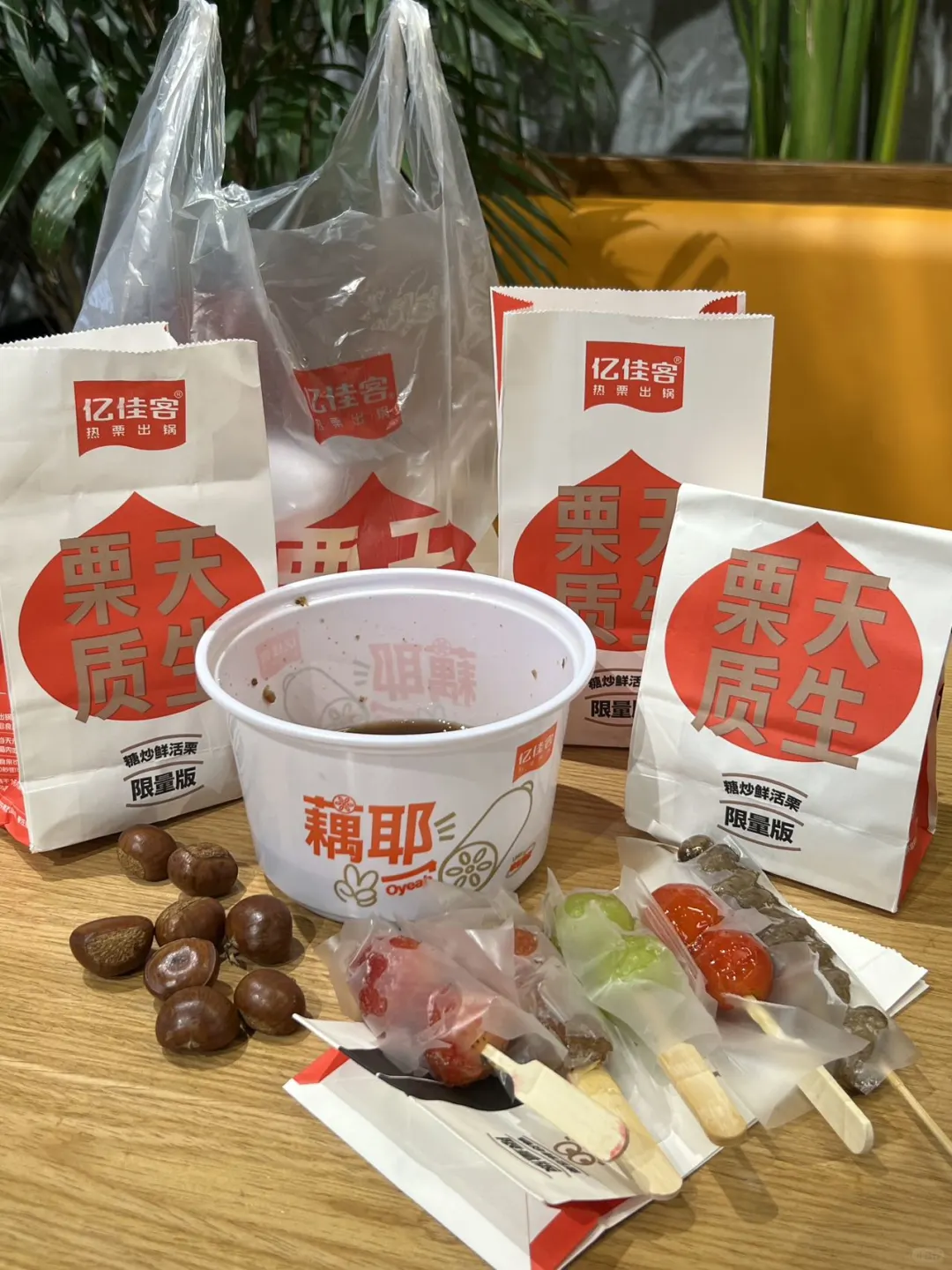 热乎乎的糖炒栗子🌰 一直都是秋冬必备的美食 吃起来软糯香甜谁能不爱这一口啊🥺 冰糖葫芦!我真的只买亿佳客的🥺 干净!!性价比高!!水果都超甜!! 每月我都要来店里囤点零食 马上过节了招待家里的亲戚一定要买点放家里呢