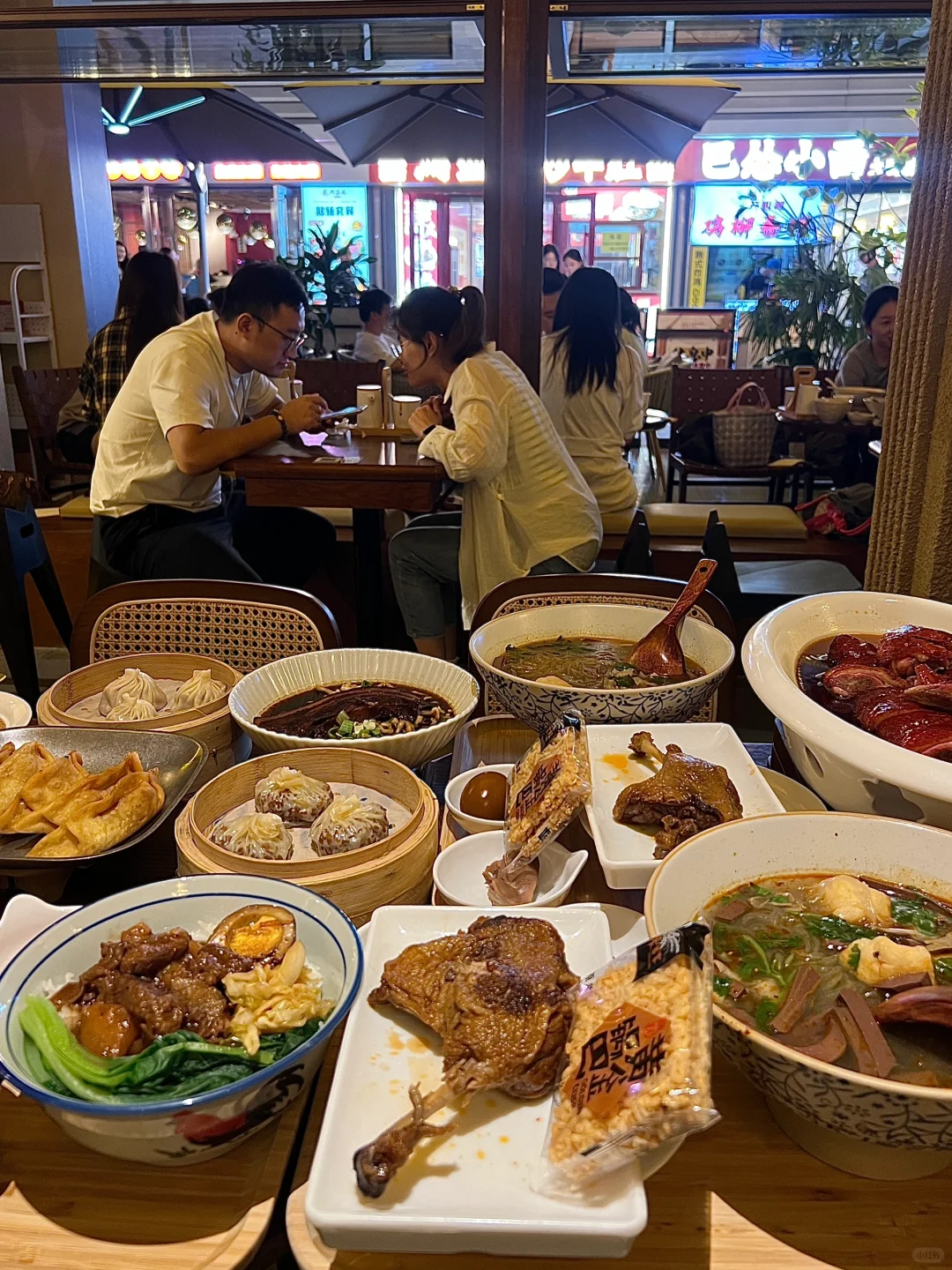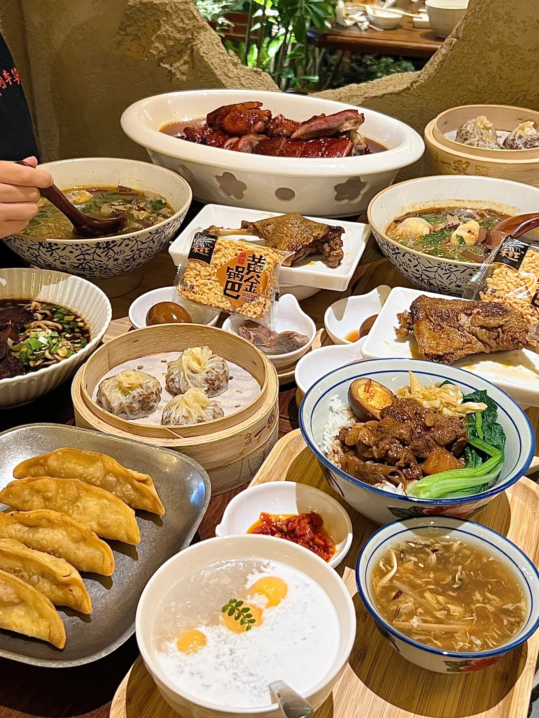 会爆汁儿牛肉锅贴🥟 烤鸭烧麦🦆金陵烤鸭…谁能不爱啊🤤 还有这次尝到的大肉面和牛腩饭都很不错👍 价格真的不贵!!一人食小食堂!!同事聚餐!!朋友小聚!!带家里人品尝等都很适合呢!!