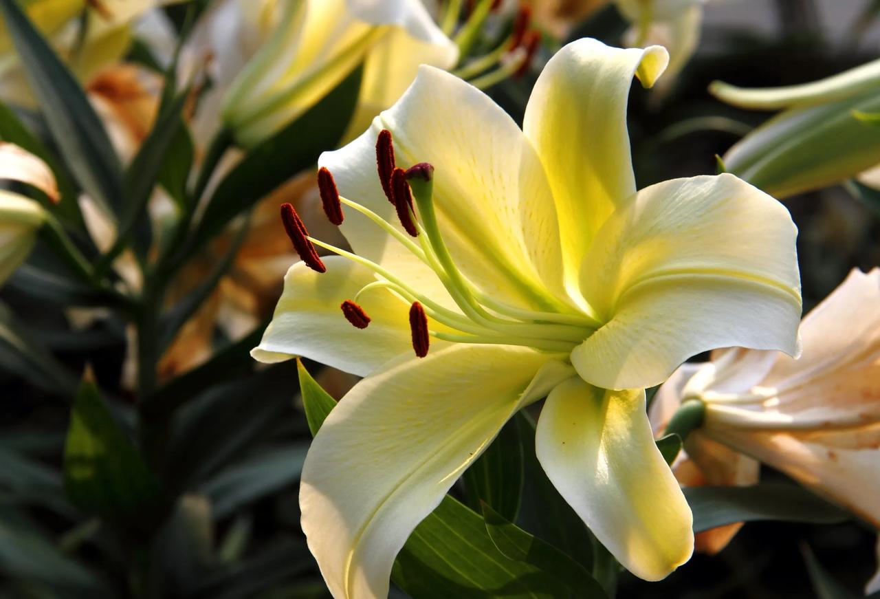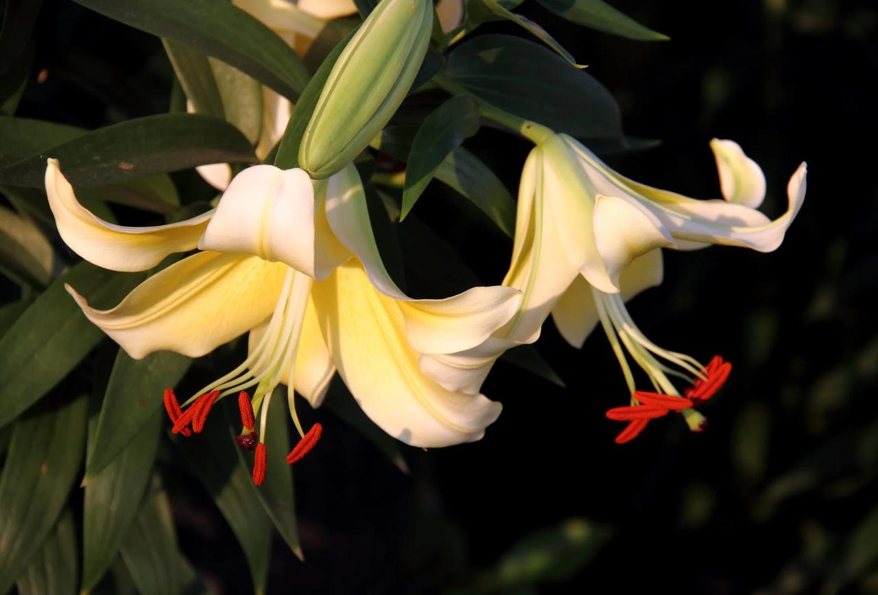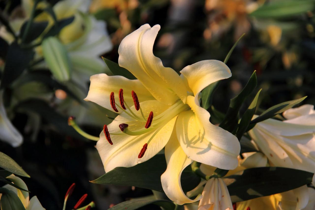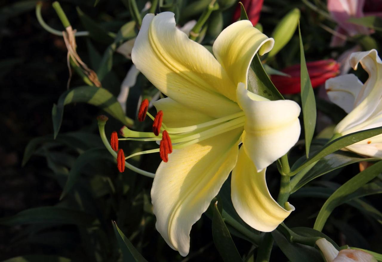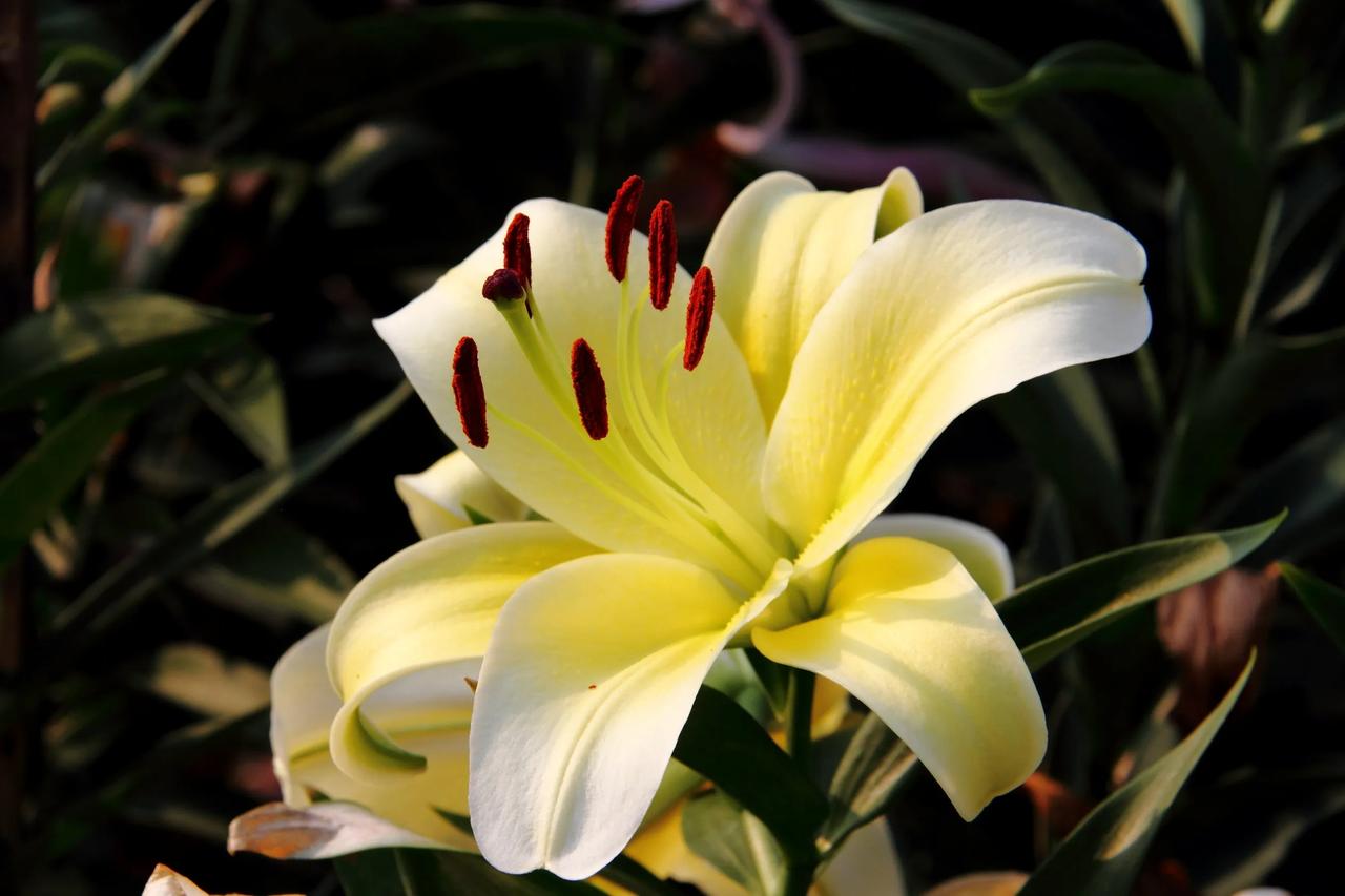 #秋日生活打卡季# 【黄白色百合花】20240929 6 金秋时节,漫花庄园百合花盛开。满园花艳,花香浓郁。百合花品种很多,虽有插牌标明品名,奈何牌多字小,难以一一细看记录。所以,赏花拍花描述介绍,还是以颜色区分为好,简单直接。至于品名,不管也罢。 漫花庄园的百合花,大致有黄白色、红色、粉红色、棕红色、金黄色、白色等六种。可谓是五彩缤纷,娇艳灿烂,非常漂亮。 黄白色的百合花,花朵较大,花瓣兼有黄白双色。6片狭长的花瓣舒展外翻,形成漂亮的喇叭形花朵,花形热烈奔放。最美的是花蕊,有点长,伸出花朵之外。晶莹的蕊柄,黄白相间。橙红色花药,娇艳璀璨,靓丽夺目。由于花朵较大,花形狂放,聚生在花穗顶端的几朵花,挤挤挨挨,难分彼此,很难分割出单一的花朵。倒是花蕊伸出花朵,容易切割出来,形成漂亮的图片。 黄白色的百合花,花香浓郁,应是开花较早的品种,已有枯萎的花朵。 #分享拍摄的花朵# #花草摄影爱好者# #秋日生活打卡季#