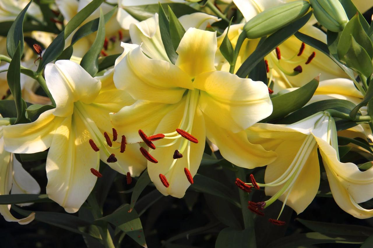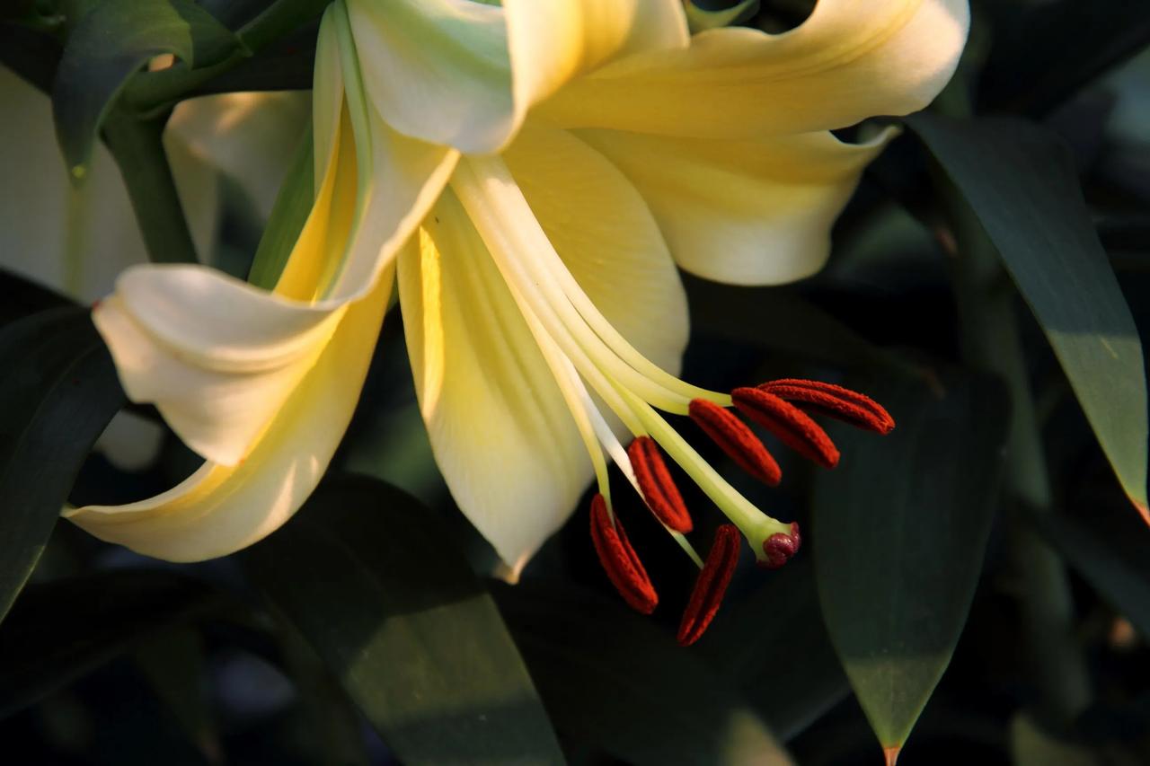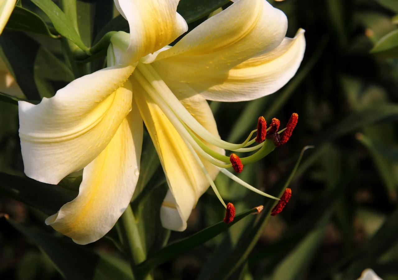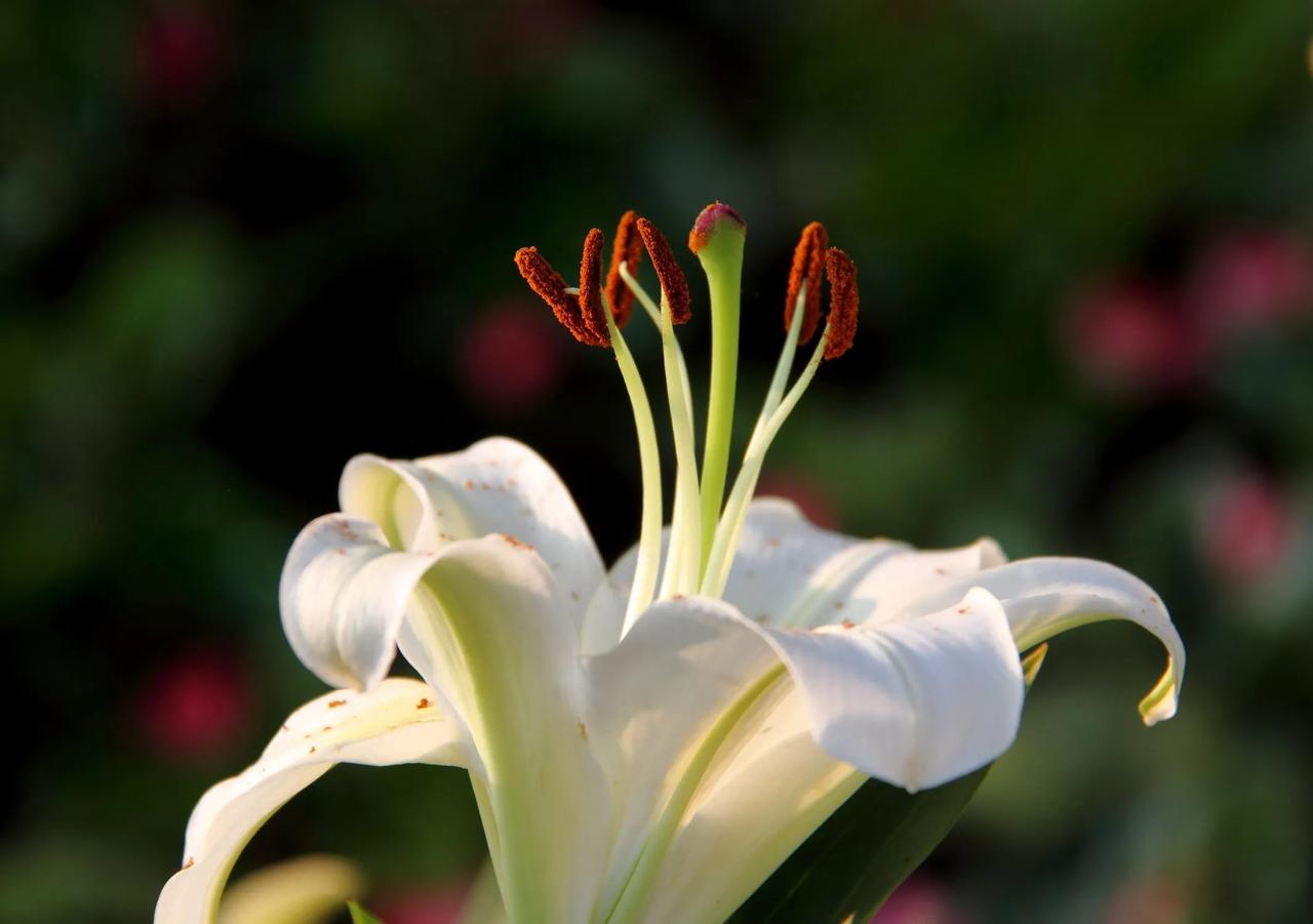 #秋日生活打卡季# 【黄白色百合花】20240929 6 金秋时节,漫花庄园百合花盛开。满园花艳,花香浓郁。百合花品种很多,虽有插牌标明品名,奈何牌多字小,难以一一细看记录。所以,赏花拍花描述介绍,还是以颜色区分为好,简单直接。至于品名,不管也罢。 漫花庄园的百合花,大致有黄白色、红色、粉红色、棕红色、金黄色、白色等六种。可谓是五彩缤纷,娇艳灿烂,非常漂亮。 黄白色的百合花,花朵较大,花瓣兼有黄白双色。6片狭长的花瓣舒展外翻,形成漂亮的喇叭形花朵,花形热烈奔放。最美的是花蕊,有点长,伸出花朵之外。晶莹的蕊柄,黄白相间。橙红色花药,娇艳璀璨,靓丽夺目。由于花朵较大,花形狂放,聚生在花穗顶端的几朵花,挤挤挨挨,难分彼此,很难分割出单一的花朵。倒是花蕊伸出花朵,容易切割出来,形成漂亮的图片。 黄白色的百合花,花香浓郁,应是开花较早的品种,已有枯萎的花朵。 #分享拍摄的花朵# #花草摄影爱好者# #秋日生活打卡季#