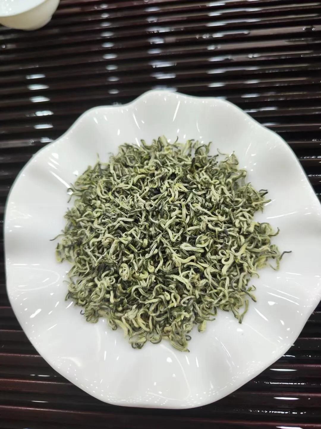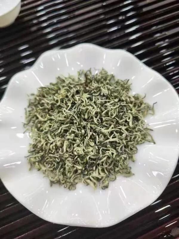 一嫩三鲜、条索紧结,卷曲如螺,白毫毕露,冲泡后茶叶徐徐舒展,茶水银澄碧绿。