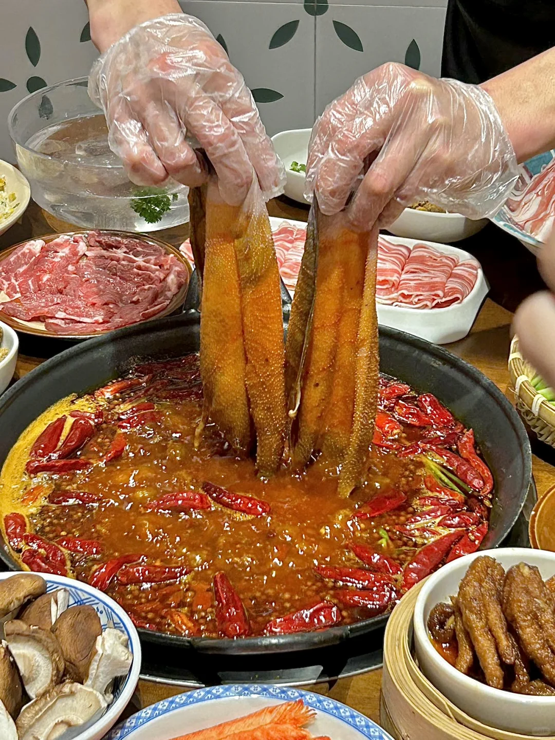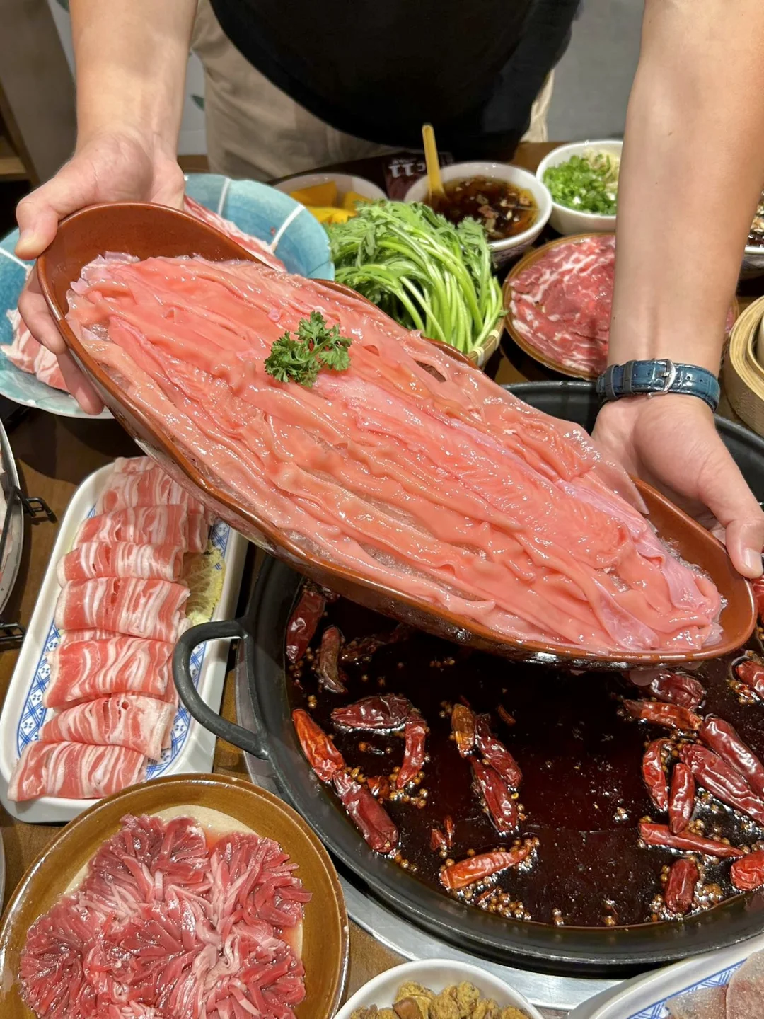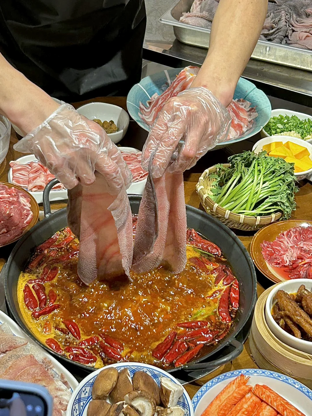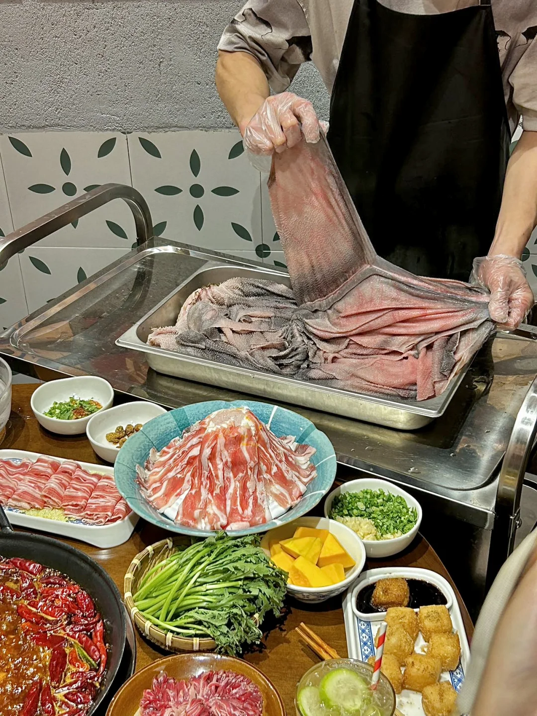 🍲必点菜品是他们家的招牌手撕毛肚 师傅现场手撕超大片的毛肚 肉眼可见的新鲜度 下锅十秒左右就能吃 好吃又鲜爽 脆嫩感满分💯!
