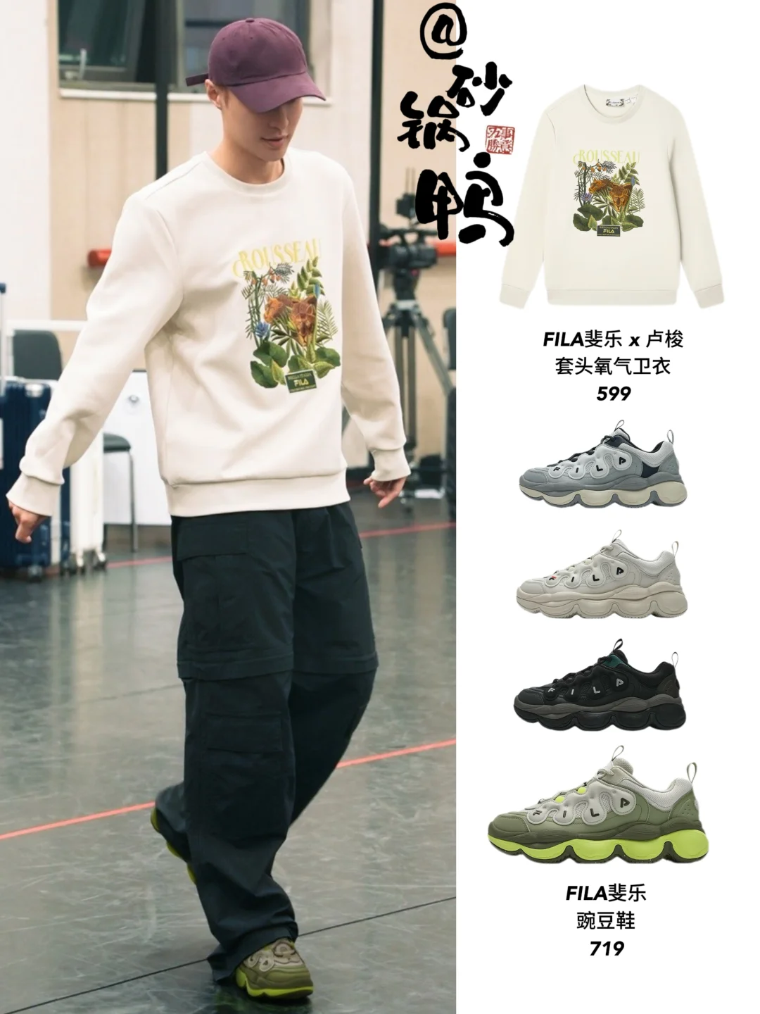 张艺兴工作室更新排练穿搭look一则 上身FILA斐乐套头氧气卫衣,下搭黑色工装裤,上脚同品牌豌豆鞋,时髦感拉满,要说还得是带盐人,和品牌的适配度就是高,满分驾驭了属于是! 图源:张艺兴工作室