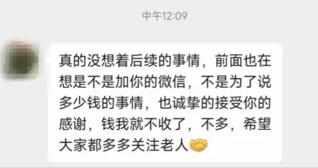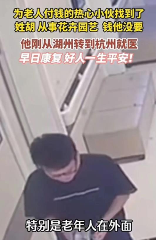 “这个小伙火了!”浙江湖州,大爷给老伴儿挂急诊,身上钱不够急得团团转。身后的小伙看到后,直接对收钱的护士说:“剩下不够的钱,扫我的手机吧!”而小伙扫完以后,没有留下姓名就走了,而接下来发生的事情令人更加感动! 阮大爷(化名)生活在浙江湖州的长兴县,今年已经88岁了,在前不久阮大爷带着自己的老伴去医院看病时遇到了一件让他感到非常感动的事情,事情还要从事发当天开始说起。 2024年9月12日,中午阮大爷的老伴突然感到自己腹部疼痛难忍,于是阮大爷就立刻带着自己的老伴来到了当地的一家医院进行检查。 因为当时走的比较匆忙,阮大爷的身上只带了500多元钱,在起初阮大爷认为这笔钱便已经足够用来给自己的老伴看病使用了。 然而让阮大爷没有想到的是,当他带着自己的老伴来到医院交钱的时候,却被医院的收费窗口的护士告知需要700多元。 这下顿时让阮大爷懵了,自己老伴正在等着交钱做检查,而自己现在带的钱却又不够,返回家中拿钱又害怕耽误自己老伴的病情。 因此阮大爷一时之间也是不知道该怎么办才好了,整个人都急的如同热锅上的蚂蚁一般,而就在这个时候,旁边一名三十多岁的小伙子直接站了出来。 这名小伙正是生活在长兴的胡先生(化名),事发当天他到医院接受复查,在这个过程中他恰好遇到了阮大爷。 当得知了阮大爷的困境之后,胡先生也是直接二话不说的就决定帮助一下阮大爷,于是他就直接来到收费窗口告知护士直接刷他的钱就可以。 就这样胡先生帮助了阮大爷垫付了280多元的医疗费,使得阮大爷的老伴得到了及时的治疗。 而当时在受到了胡先生的帮助之后,阮大爷也是想要好好的感谢一下他,可是当时的阮大爷却发现胡先生已经离开了。 但是阮大爷却将这个事情一直都记在自己的心里,在他看来自己不能就这样平白的接受人家的帮助,无论如何自己都应该好好地感谢一下对方。 于是在事情发生后没多久,阮大爷就将这个事情告诉给了自己的女儿阮女士(化名),阮女士在得知了这个情况之后,心中也是对胡先生充满了感激之情。 作为儿女她当时也觉得有必要代替自己的父母向胡先生好好地表达一下感激之情,为了找到帮助自己父母的胡先生,阮女士还为此向媒体进行了求助。 2024年9月28日,在事情发生大概两周之后,阮女士终于找到了胡先生,在得到了胡先生的联系方式之后,阮女士也是立刻就添加了对方,并在申请信息中说明了情况。 不过当时胡先生却先后两次拒绝了阮女士的申请,直到阮女士第三次发起好友申请时,胡先生方才同意添加了阮女士的好友。 而他之所以会选择拒绝天界阮女士的好友,是因为在他看来,当时他只是做了一件微不足道的小事,并没有想过后续事情。 后来胡先生又拒绝了阮女士发过去的红包,以及阮女士想到当面感谢的请求,并在面对记者采访的时候胡先生表示,自己只是做了一个小事情,没有耽误老人检查就好。 事情被发布到了网络上之后,也是引起了广大网友们的关注和评论,网友们纷纷对此发表了自己的看法和观点。 有网友对此表示:真心想帮助您的人,是不要求回报的。因为心里的善,200块能买他一天的心情愉悦。 还有网友对此表示:对素不相识的陌生人如此慷慨解囊的人是凤毛麟角。小伙的举动好令人敬佩! 那么对此,您持有怎样的看法呢? 今天的分享到这里就结束了,大家对此事有何看法,欢迎在评论区留言和讨论,感兴趣的可以点击头像加关注,我将每日更新优质内容,我们下期见。 信源: 原文登载于光明网2024年9月29日关于《“扫我的!”替老人垫付急诊费的陌生小伙找到了》的报道