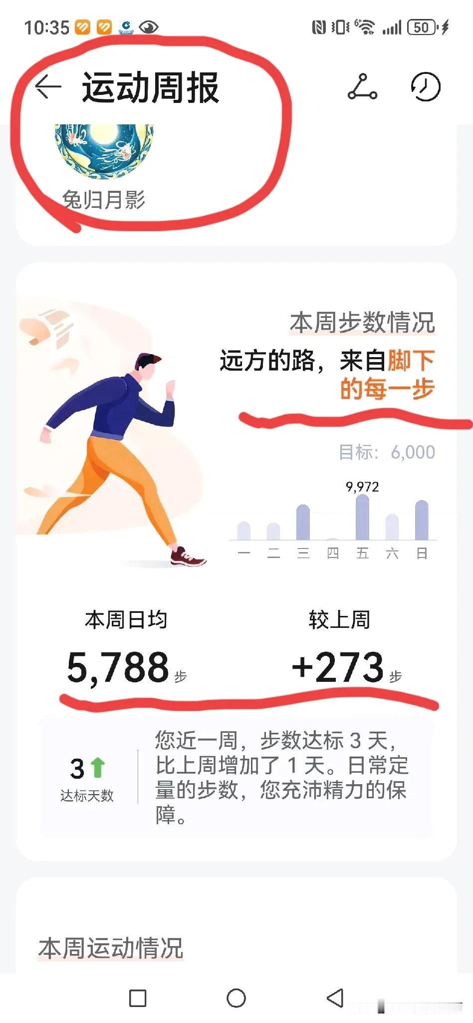 #我的运动日常#我的运动周报和运动月报出炉了!步行成绩分别显示:本周日均5788