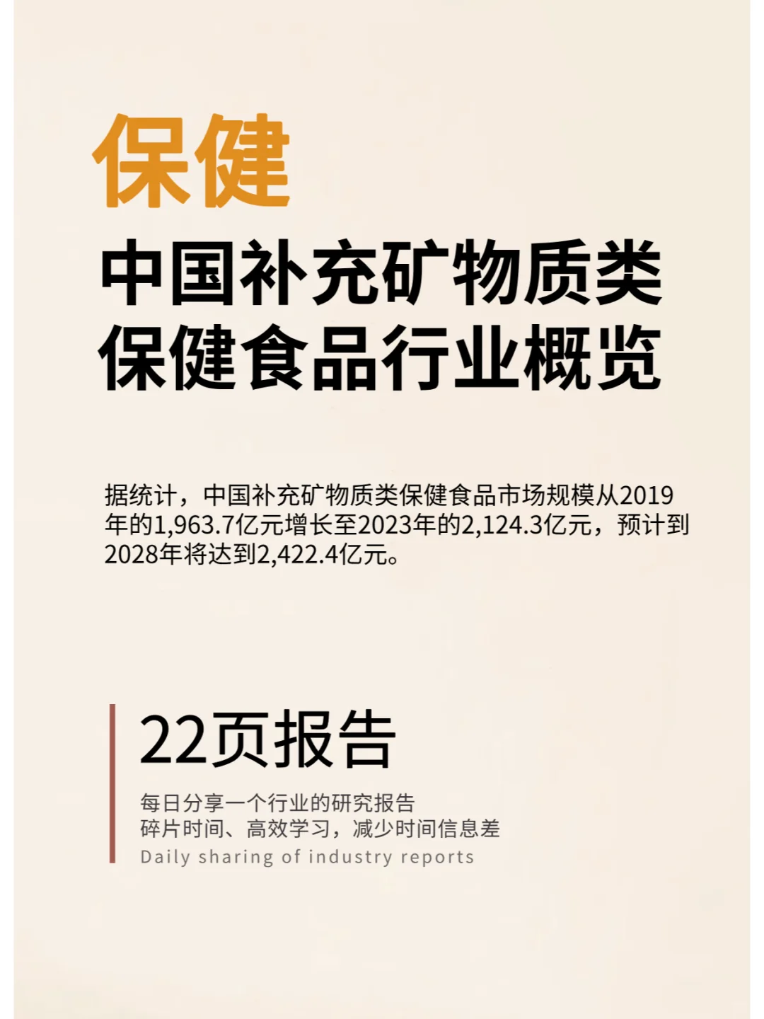 随着健康意识的增强,矿物质补充剂成为越来越多人的选择💪 在中国,补充矿物质类保健食品行业正迎来新的发展机遇。